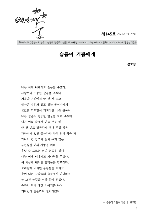 | 146호(2024.6.25 발행) (0) | 2024.06.25 |