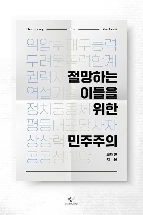 ‘절망하는 이들을 위한 민주주의’저자 최태현은 현재 우리가 처한 절망적 상황을 희망적으로 본다. 절망과 희망을 분리하여 따로 생각해서는 안된다고 한다. 절망에 대한 성찰이 희망의 시작이 되어야 한다고 거듭 말하고 있다.