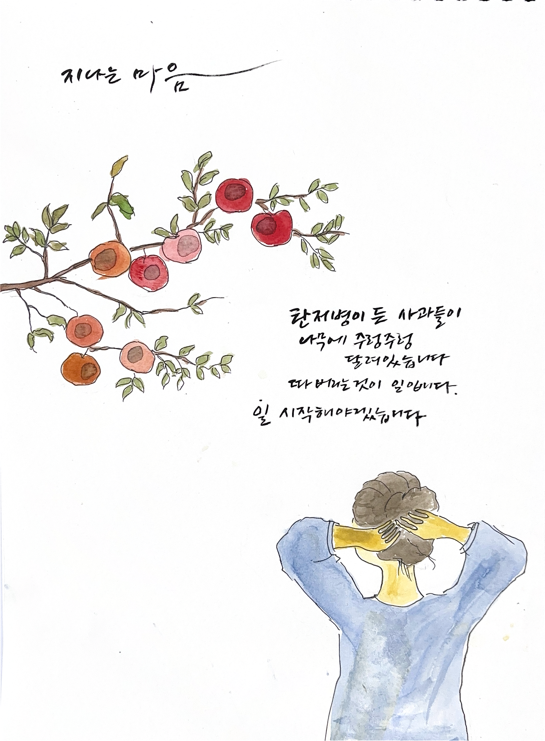 소식지/지나는 마음 병든 사과와 일 by 인권연대 숨 2024. 10. 25. 공유하기 게시글 관리 인권연대 숨 저작자표시 비영리 변경금지 (새창열림) '소식지 > 지나는 마음' 카테고리의 다른 글 한 번도 좋은 시절이 없었던 농민들에게 (0) 2024.12.26 웬만해야지요 (0) 2024.11.25 지나는 마음 (0) 2024.09.26 인정과 공감 (0) 2024.08.26 수시로 돌보는 (0) 2024.07.26 관련글 한 번도 좋은 시절이 없었던 농민들에게 웬만해야지요 지나는 마음 인정과 공감 댓글