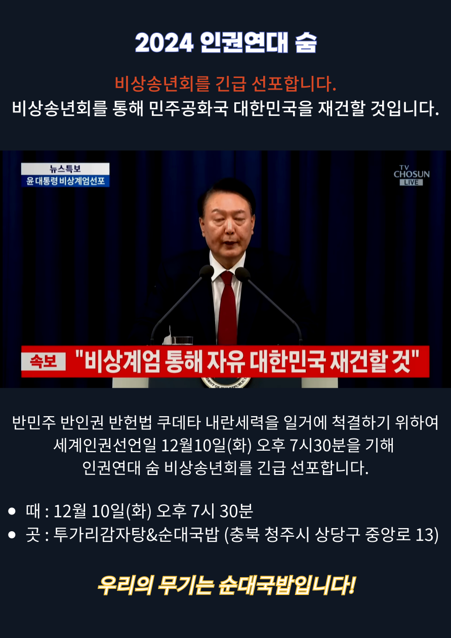 | 11월2일(토) 인권을 일일이 찾으러 충북도청으로 오세요 . (0) | 2024.10.31 |