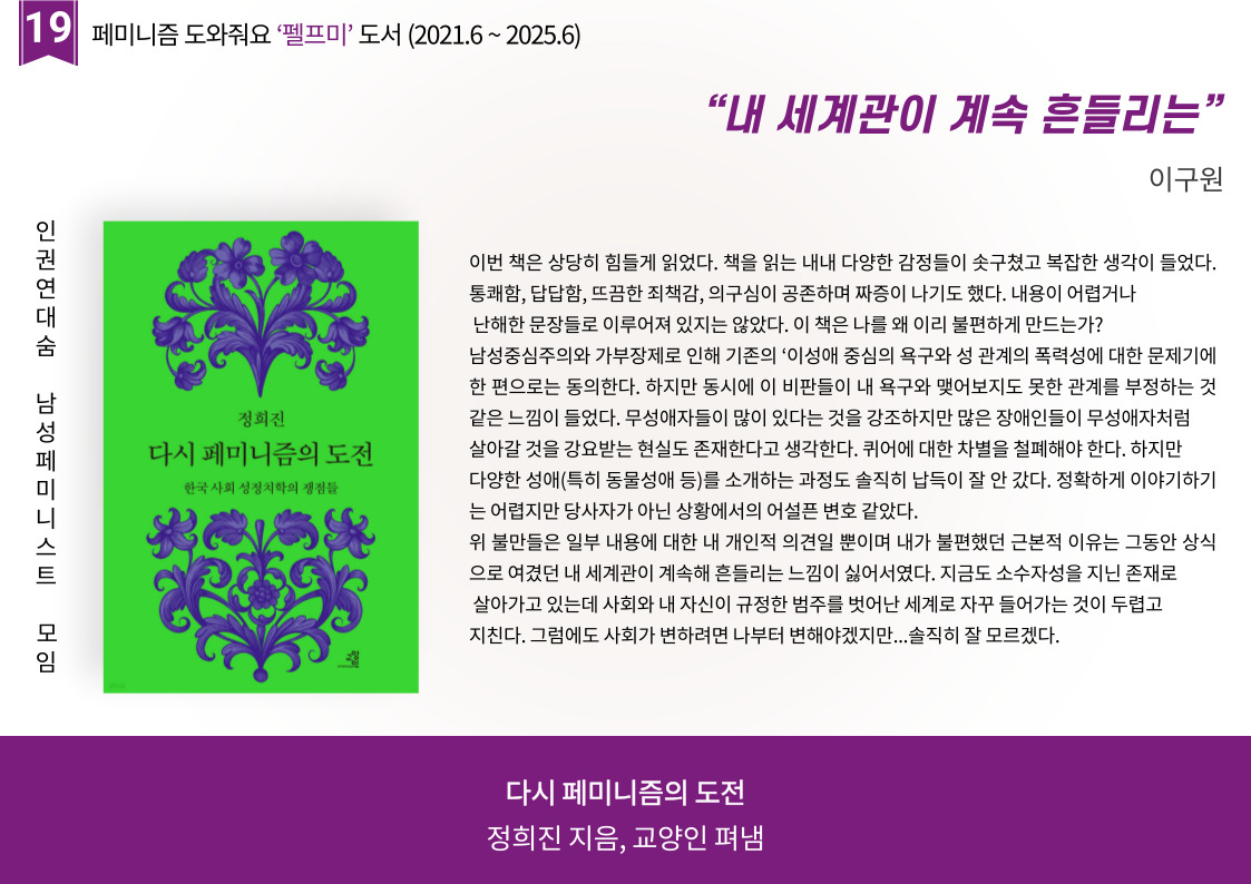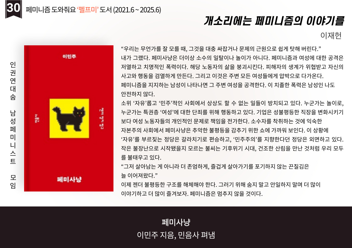 | 펠프미 서른번 째 '우리가 우리를 구한다' (1) | 2025.04.03 |