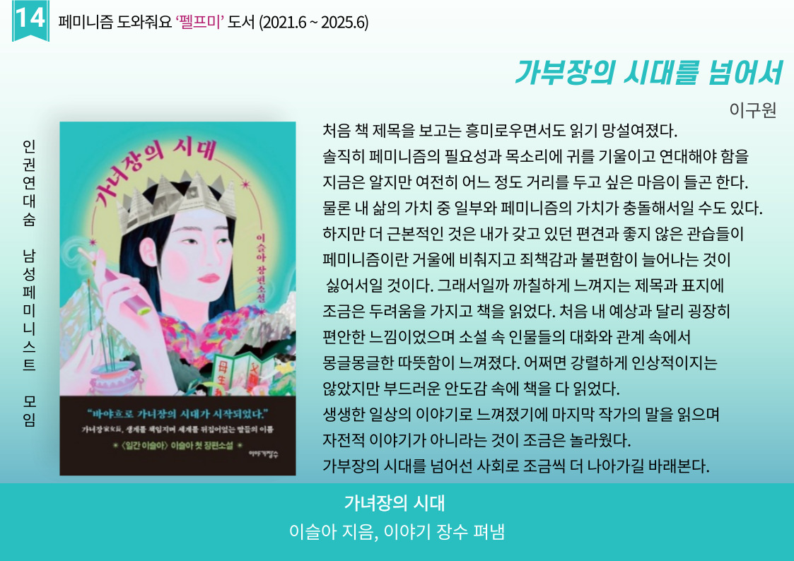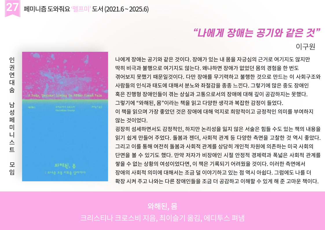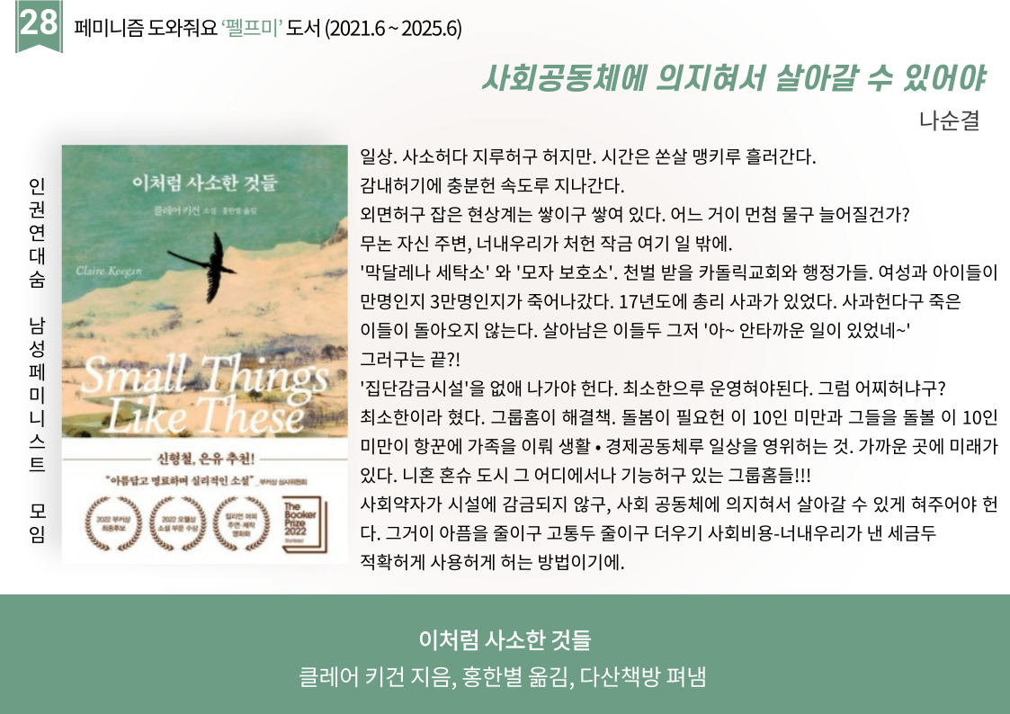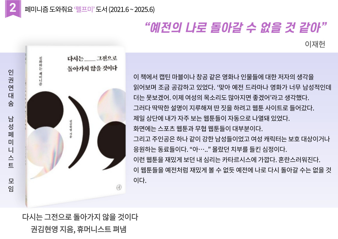 | 펠프미 서른번 째 '우리가 우리를 구한다' (1) | 2025.04.03 |
