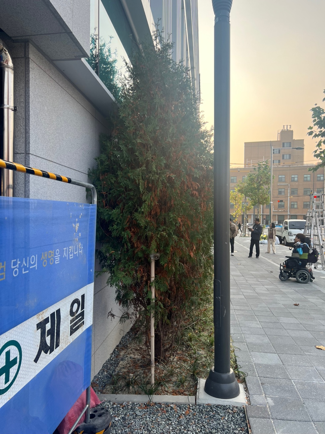 도의원, 공무원, 시민 들이 횡단보도를 건너 오가며 서로 마주치며 날씨도 명함도 민심도 건넬 수 있었을 텐데...조망권 침해다.
