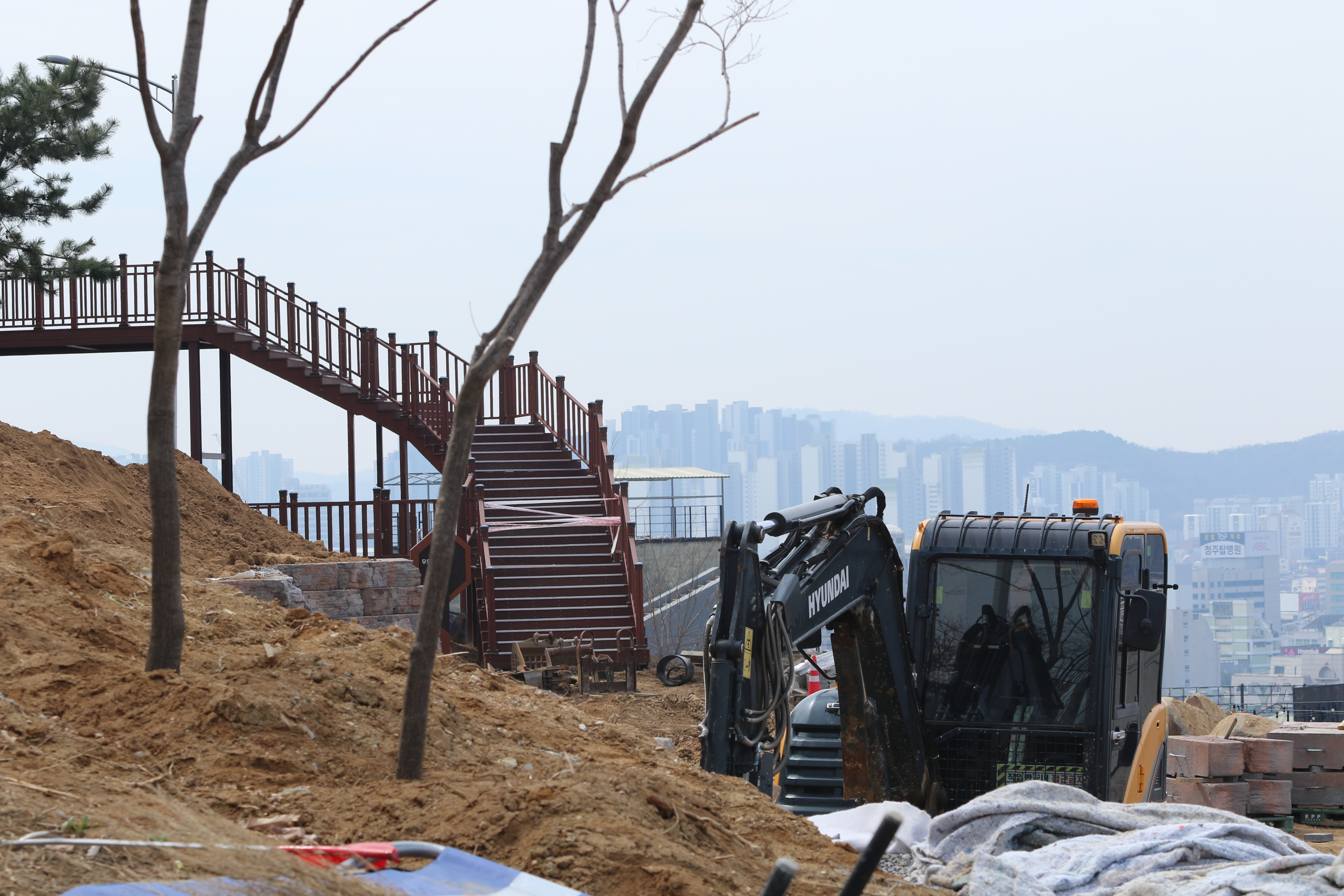 1년만에 다시 찾은 우암산 둘레길 나무들은 더 쇠약해졌고, 조망할 것 없는 곳에 ‘청주우드하늘길’이라는 데트를 만들었다. 근린공원 조성 작업, 폐업한 카페 무덤인 수암골...