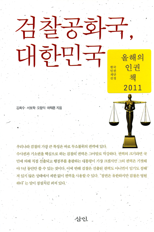 우병우 전 민정수석이(이하 우병우) 팔짱을 끼고 웃으며 여유롭게 앉아 있고 검찰 관계자들이 두 손을 공손하게 모으고 서 있는 모습이 한 언론사 카메라에 잡혔다. 한 장의 사진이 우병우의 현재적 지위가 어떠한지를 설명해준다. 민정수석 자리에서 물러나지 않고 버틴 이유를 알게 해 준 사진이다. 우병우, 그는 검사 출신이다. 승승장구하던 아주 잘나가는 검사, 노무현 전 대통령을 수사했던 검사다. 검찰은 스스로를 “우리 사회 최고의 엘리트”라고 한단다. 젊은 나이에도 “영감님” 소리를 듣는 검사들, 그들은 대체 어떤 이들일까. 검사라는 게 얼마나 대단한 것일까. 대체 왜 검사 출신 정치인들은 이렇게 많고, 주요 요직에 검사 출신들이 자리하는 것일까. 궁금해서가 아니라 화가 나서 펼쳐 든 책이 바로 <검찰공화국, 대한민국>이다. 이 책은 사실 선물 받았는데 읽지 않고 사무실 책장에 처박아 뒀던 책이다. 때가 때인지라 다시 읽게 됐다. 이 책은 인권연대가 검찰 문제를 제기하면서 했던 강연을 토대로 만들어졌다.