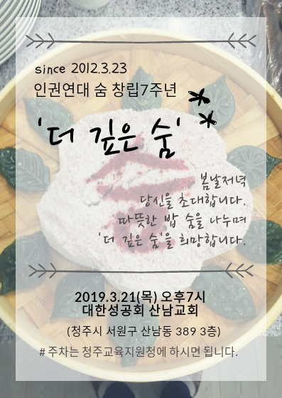 일정 및 장소 : 29() 저녁 7시 인권연대 숨