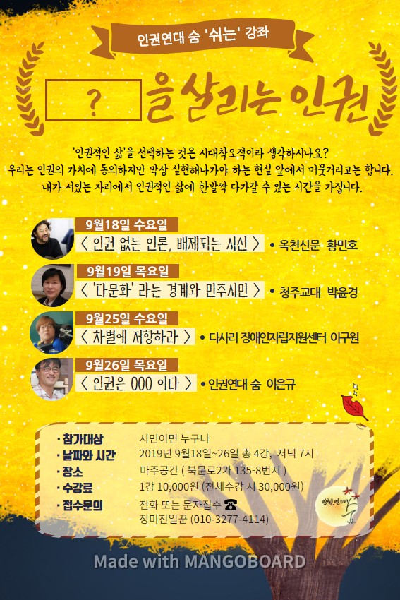 #인권연대숨 #인권강좌 #시민강좌 #언론 #다문화 #차별 #민주주의 #황민호 #이구원 #박윤경 #이은규