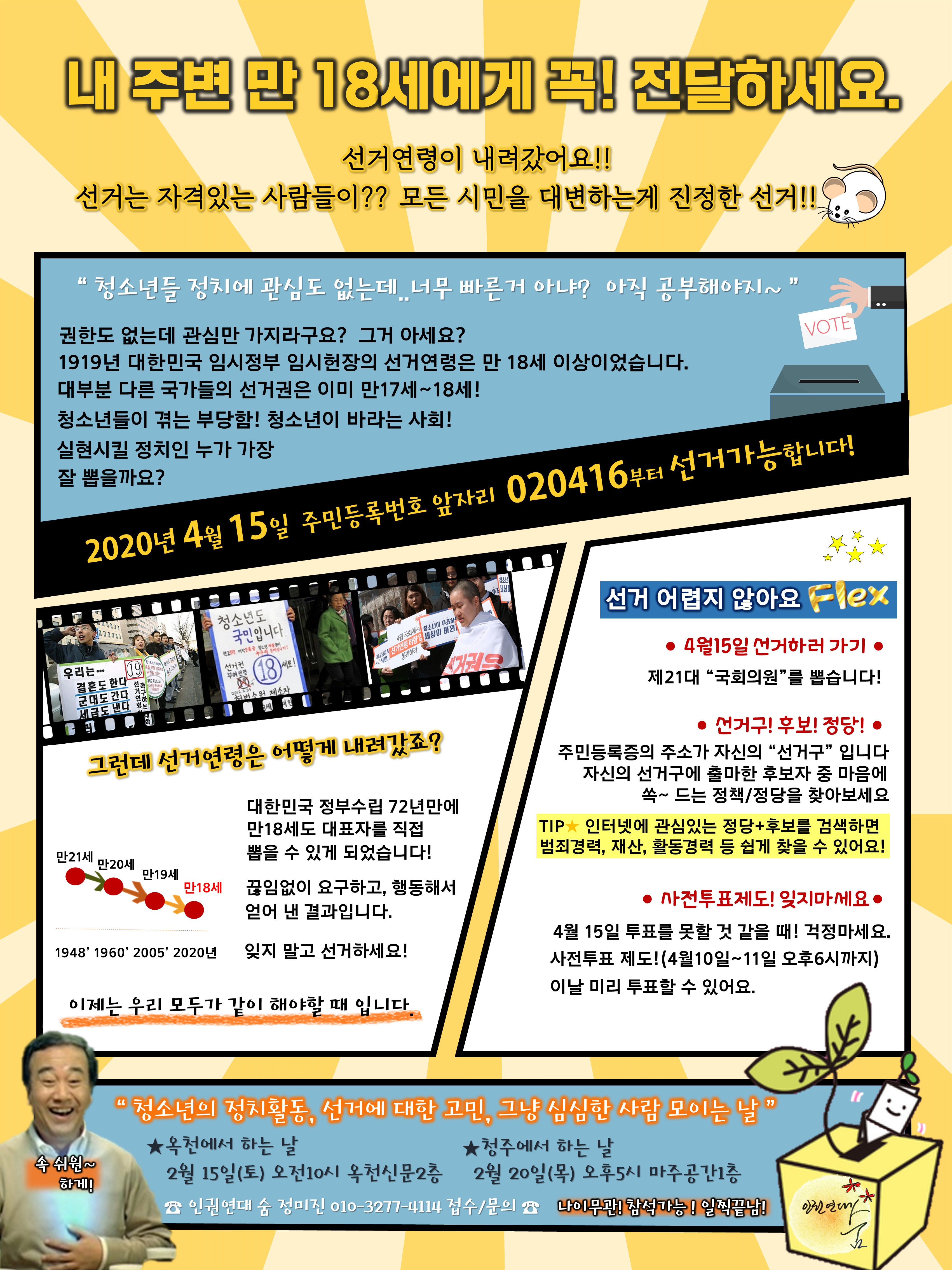 <인권연대 숨 청소년 총선참여 깜짝프로젝트> "내 주변 만 18세에게 꼭! 전달하세요"