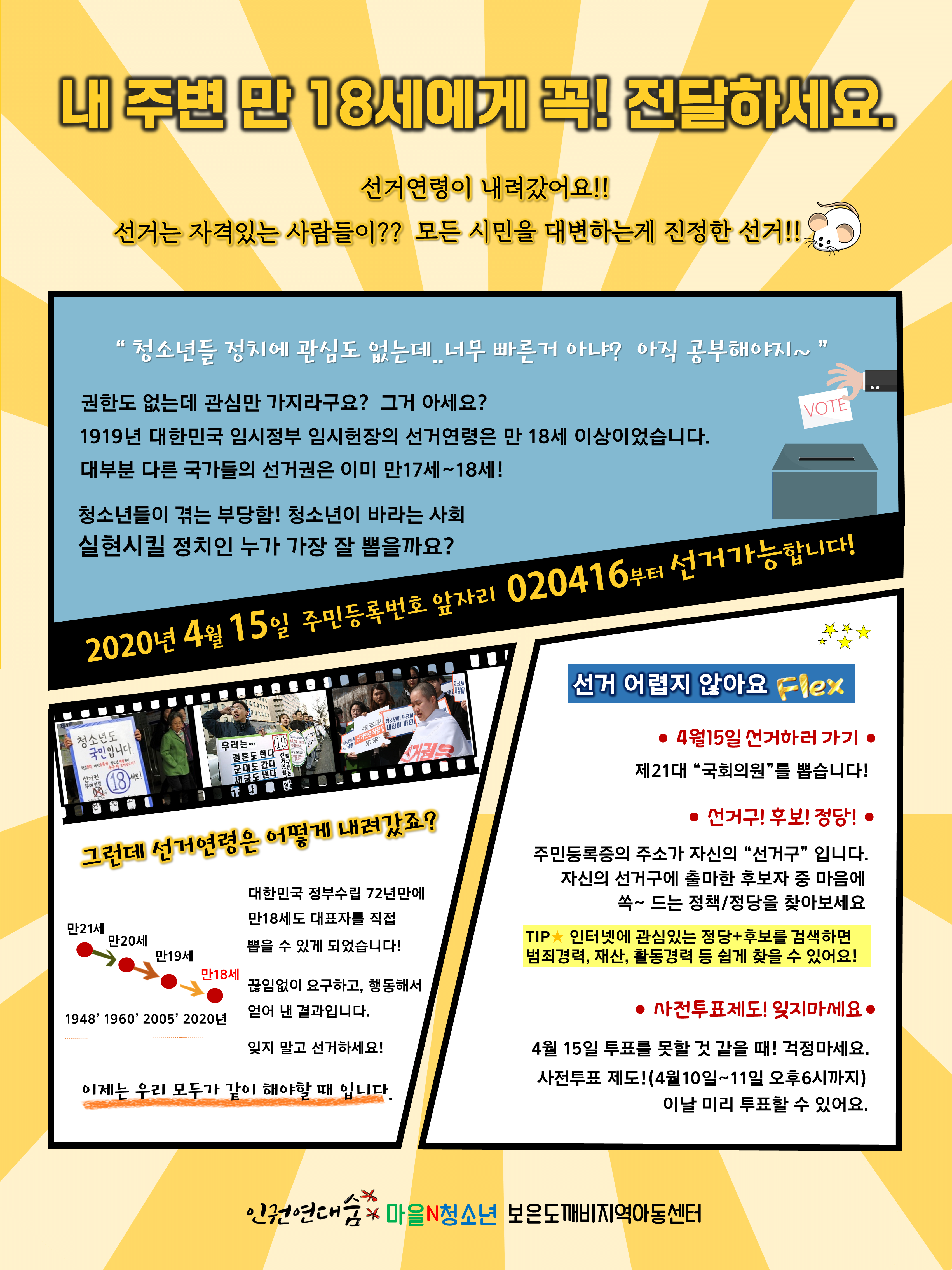 | <청소년 총선참여 프로젝트-청소년을 만나고 싶다> 2탄 청주모임 (0) | 2020.02.24 |