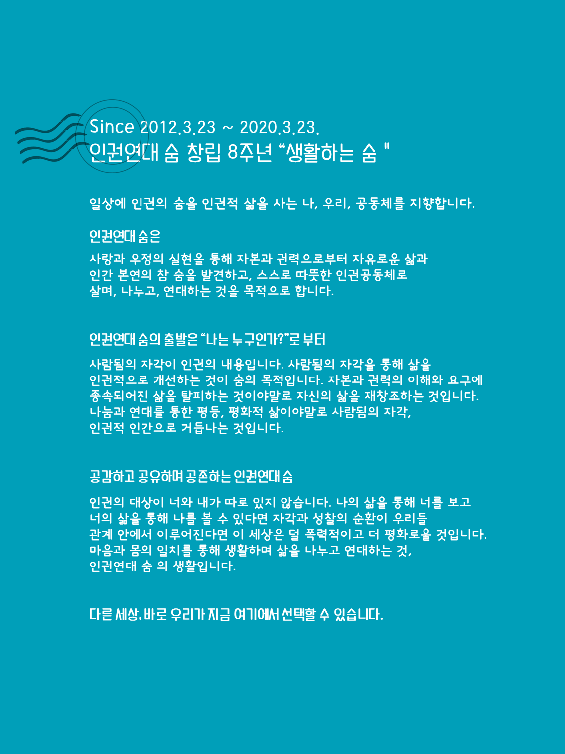 인권연대 숨 창립 8주년 生活(생활)하는 숨