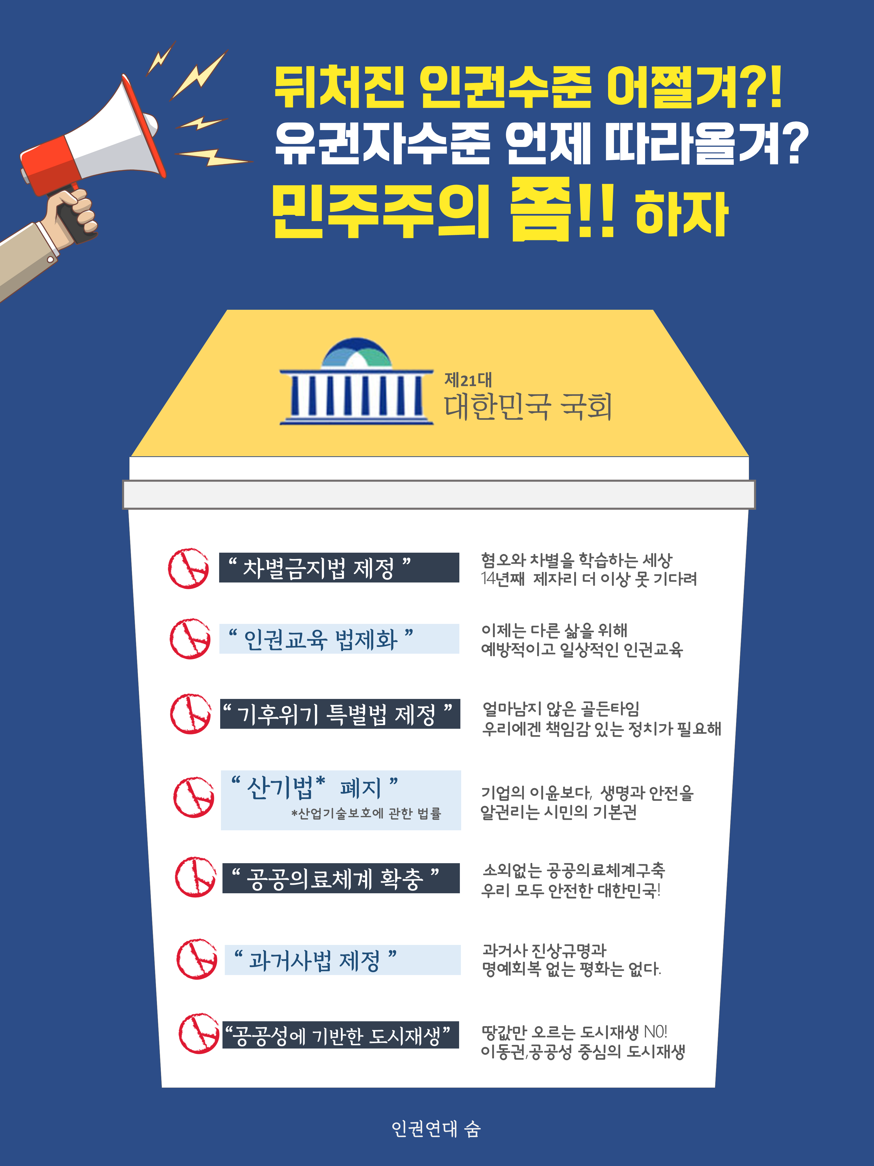 " 뒤처진 인권수준 어쩔껴?! 유권자수준 언제 따라올겨? "