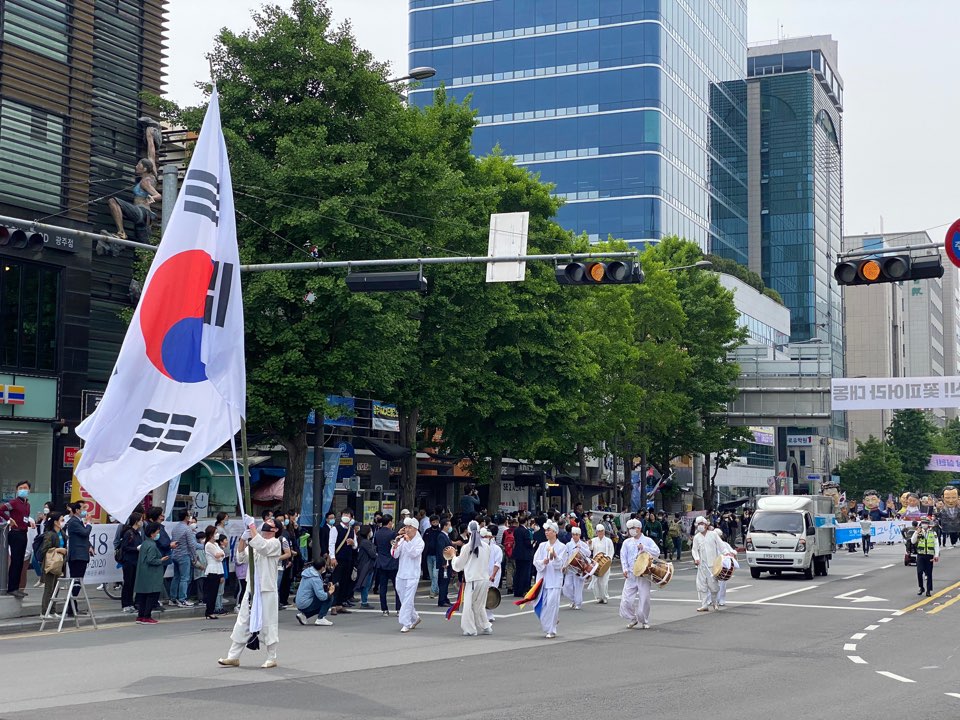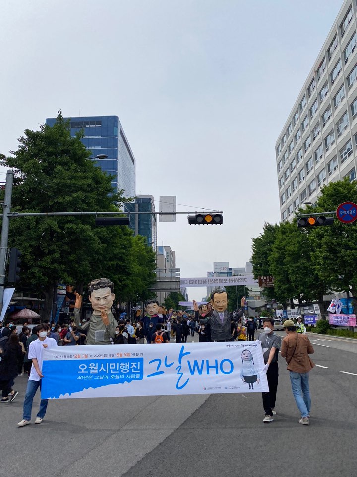 코로나19로 당일 집회는 취소되었지만 금남로에는 광주시민들이 함께 참여한 시민행진이 진행되고 있었습니다.