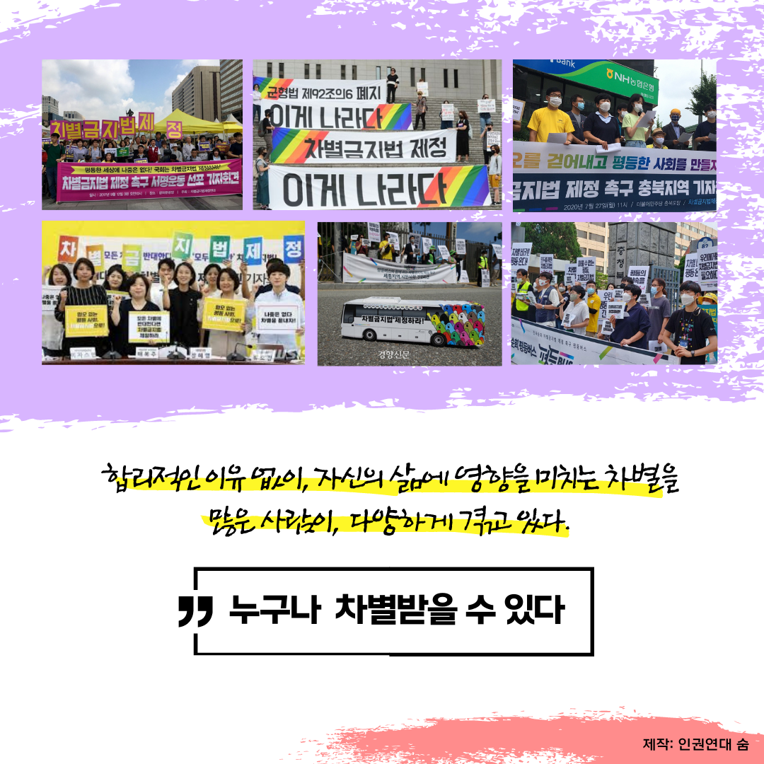 인권연대 숨과 함께하는 <차별금지법 언제할껴??> 카드뉴스 2탄!!