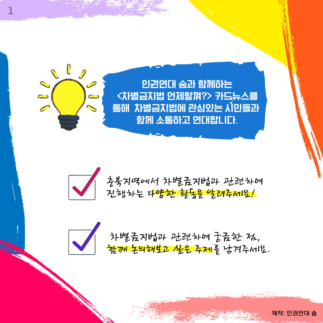 카드뉴스를 통해 차별금지법에 관심있는 시민들과 함께 소통하고 연대하려고 합니다.