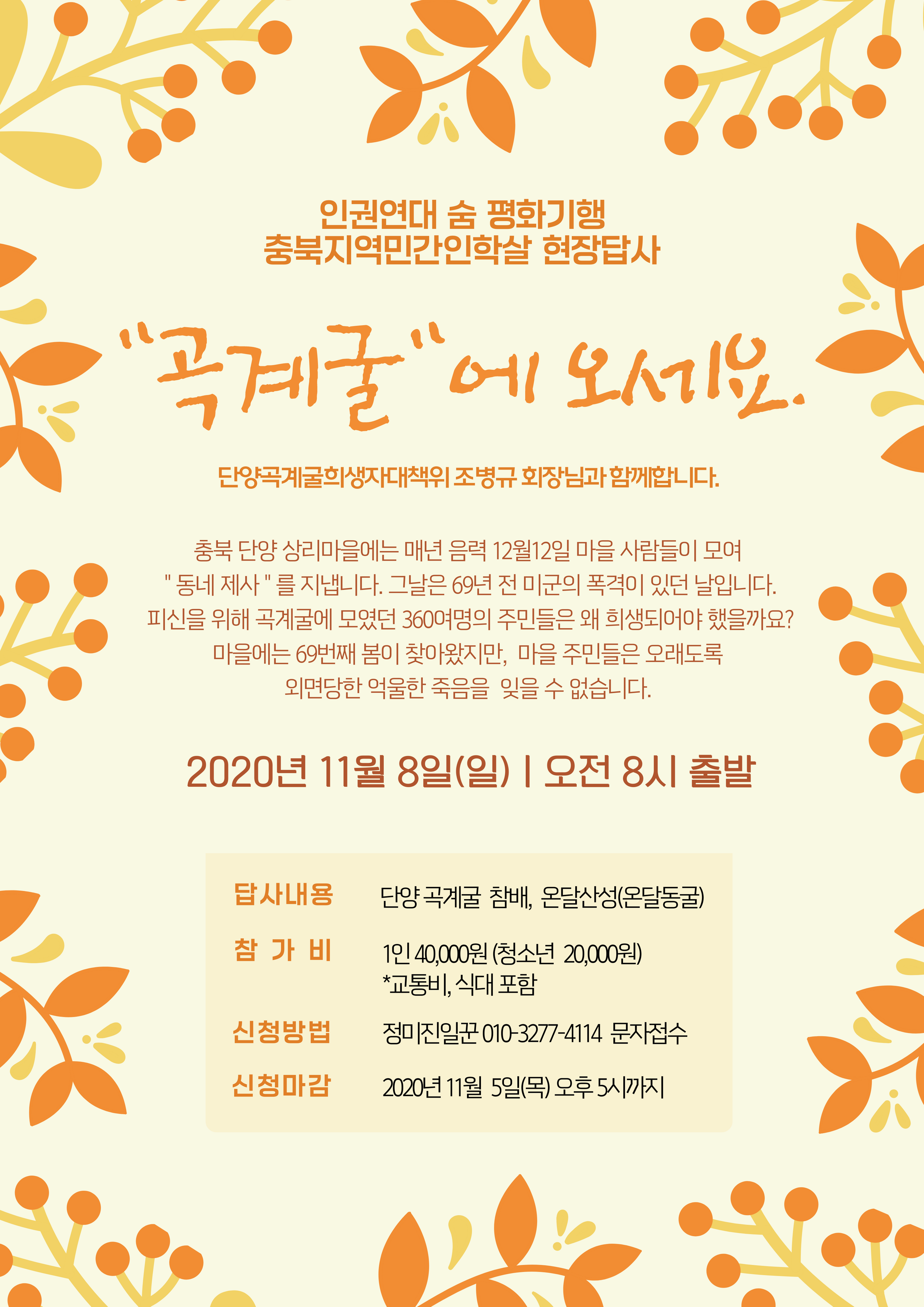 <인권연대 숨 평화기행 충북지역민간인학살 현장답사> "곡계굴"에 오세요.
