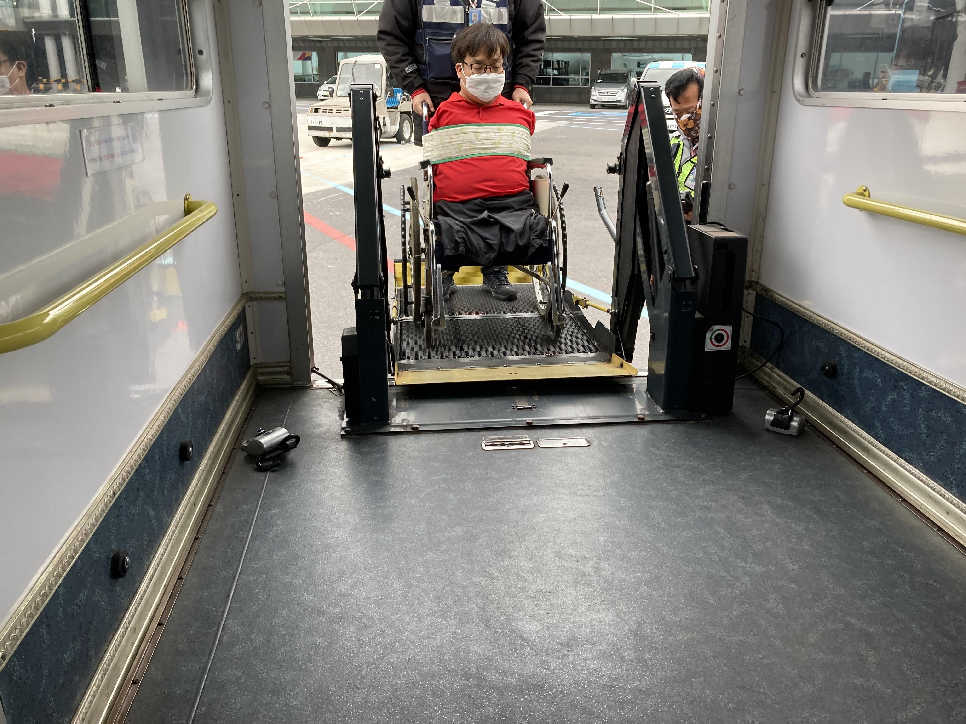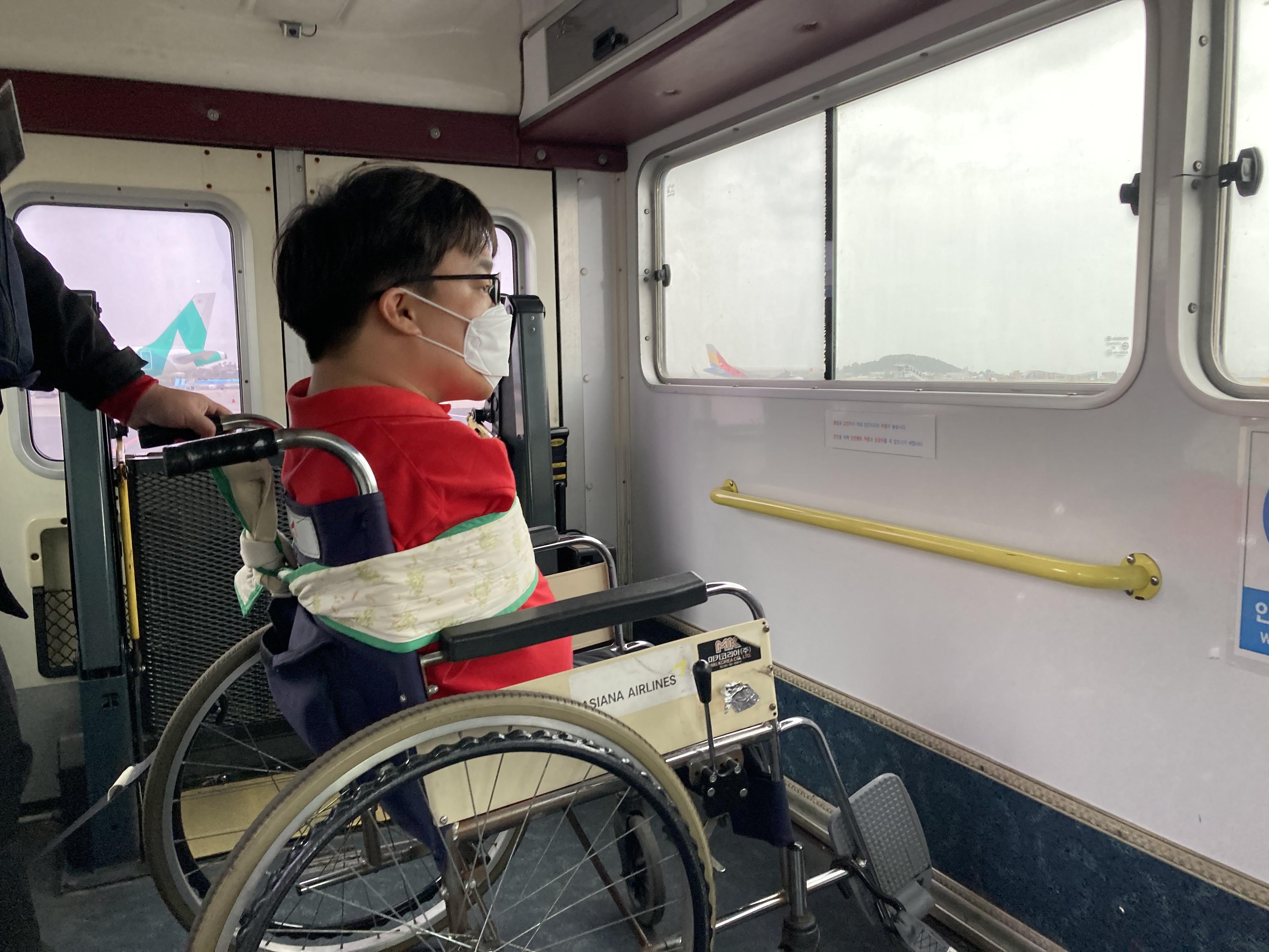 41일부터 5일까지 인권연대 숨 일꾼으로써는 처음으로 제주 4.3 기행을 다녀왔다. 개인적으로는 2번째 제주 방문 경 험이었다. 사실 첫 번째 제주 여행 때에는 공항에서 많은 부분들에 불편함을 느끼고는 했었다. 항공사 관계 직원들 모두 전동휠체어를 이용하는 장애인을 이용객으로 처음 만나는 듯 느껴졌고 배터리 분리 포함 탑승과정 자체가 매우 험난했었다. 하지만 이 번 기행에서는 동료 일꾼님의 사전 준비와 대형항공사를 선택한 영향으로 배터리 유형을 잘못 알고 갔음에도 불구하고 탑승과정이 전반적으로 매끄러웠다. 항공사 직원들이 안된다거나 이용의 어려움을 표현하지 않은 것이 새로웠다. 제주에서는 처음으로 브릿지 연결 외에 리프트 카로 항공기에 오르내리는 경험을 하기도 했다.