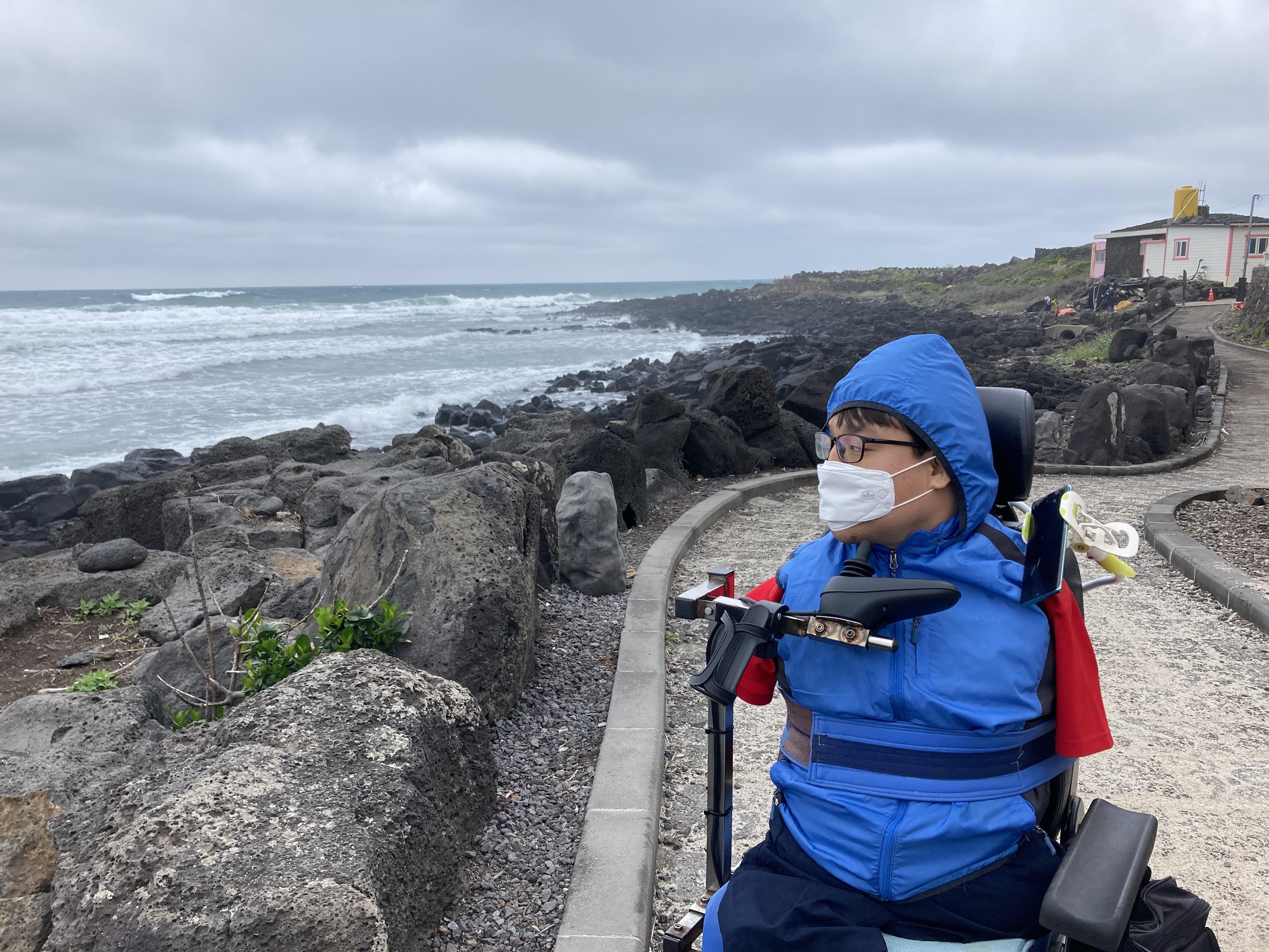넷째 날은 자유여행의 날이었다. 개인적으로 바다를 좋아하기에 애월 해변 근처를 활동지원사 형과 함께 돌아다녔고 바다가 보이는 카페에서 한동안 시간을 보내다 돌아왔다. 바람이 많이 불어 날씨가 추워 밖에 오래 있기는 어려웠지만 광활히 펼쳐진 바다와 높게 치는 파도에서 시원함이 느껴졌다. 카페에 들어가 인상적이었던 것은 장애인화장실이 설치되어 있는 점이었다. 화장실을 자유롭게 다닐 수 있는 권리는 기본적 권리임에도 공공건물을 제외하고 휠체어를 이용하는 장애인이 다닐 수 있는 화장실을 찾는 것은 매우 어려운 일이다. 그렇기에 카페에서 장애인화장실의 발견이 매우 반가웠다. 여유롭게 시간을 보내고 숙소로 돌아왔으며 저녁에는 함께한 분들과 시간을 보내며 하루를 마무리했다. 돌아오는 날은 가장 화창하고 맑은 날씨의 제주 하늘을 느낄 수 있었다. 필요한 물건들을 사고 소박하지만 아름다운 카페에서 시간을 보내다 청주로 돌아왔다.