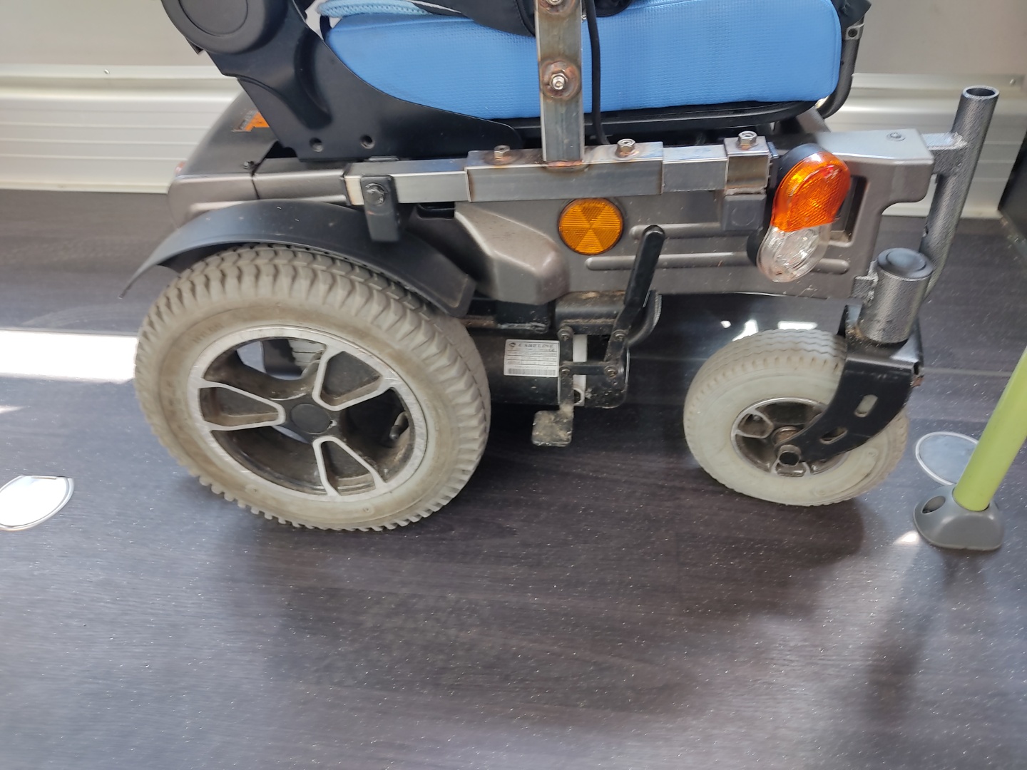 고정장치의 위치 또한 휠체어가 탑승한 곳과 다른 위치에 놓여 있습니다.