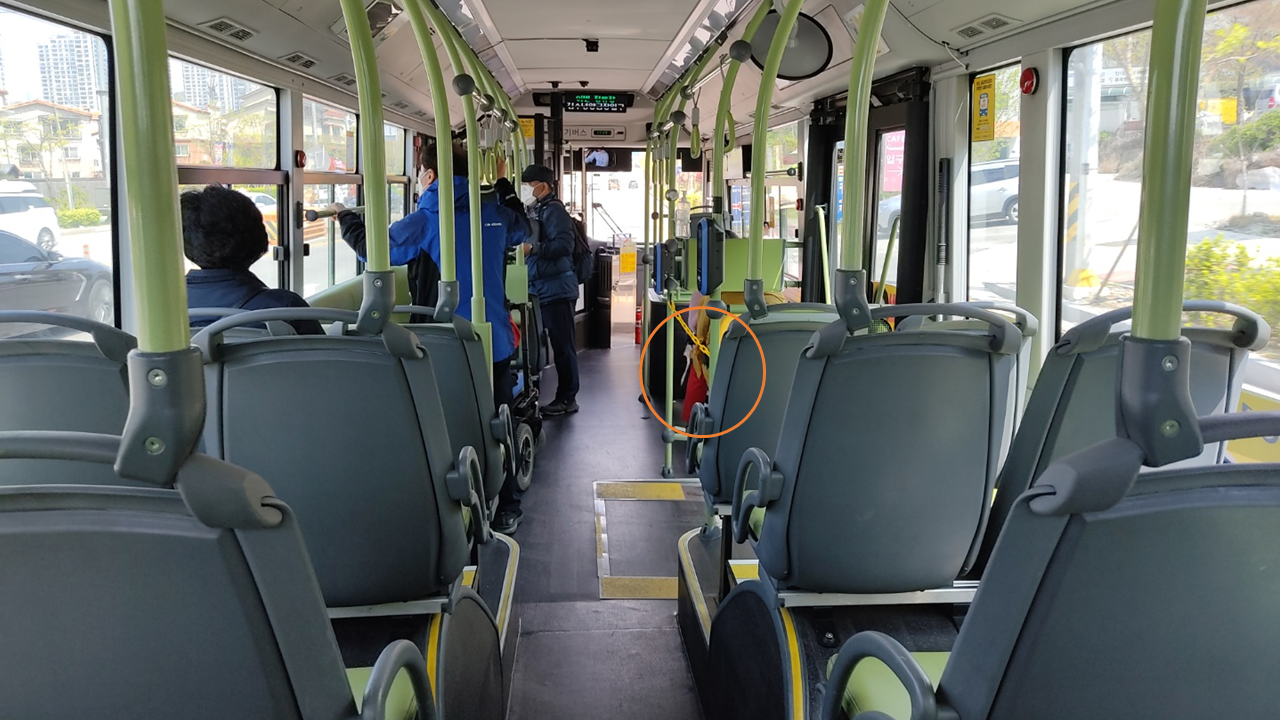 하지만 역시 휠체어 고정장치는 반대편 좌석에 있었습니다.