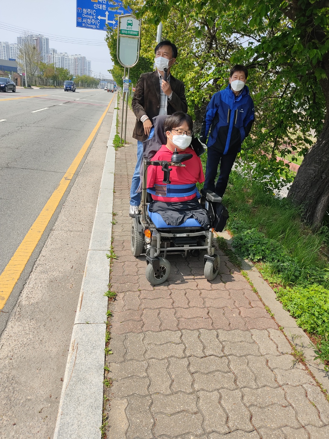 청주시장애인종합복지관은 청주시 중심지로부터 떨어진 곳에 있어 별도의 승강장 없이 푯말만 있었습니다. 청주시장애인종합복지관 맞은편 임에도 불구하고 오래되고 좁은 보행로가 눈에 띄었습니다.