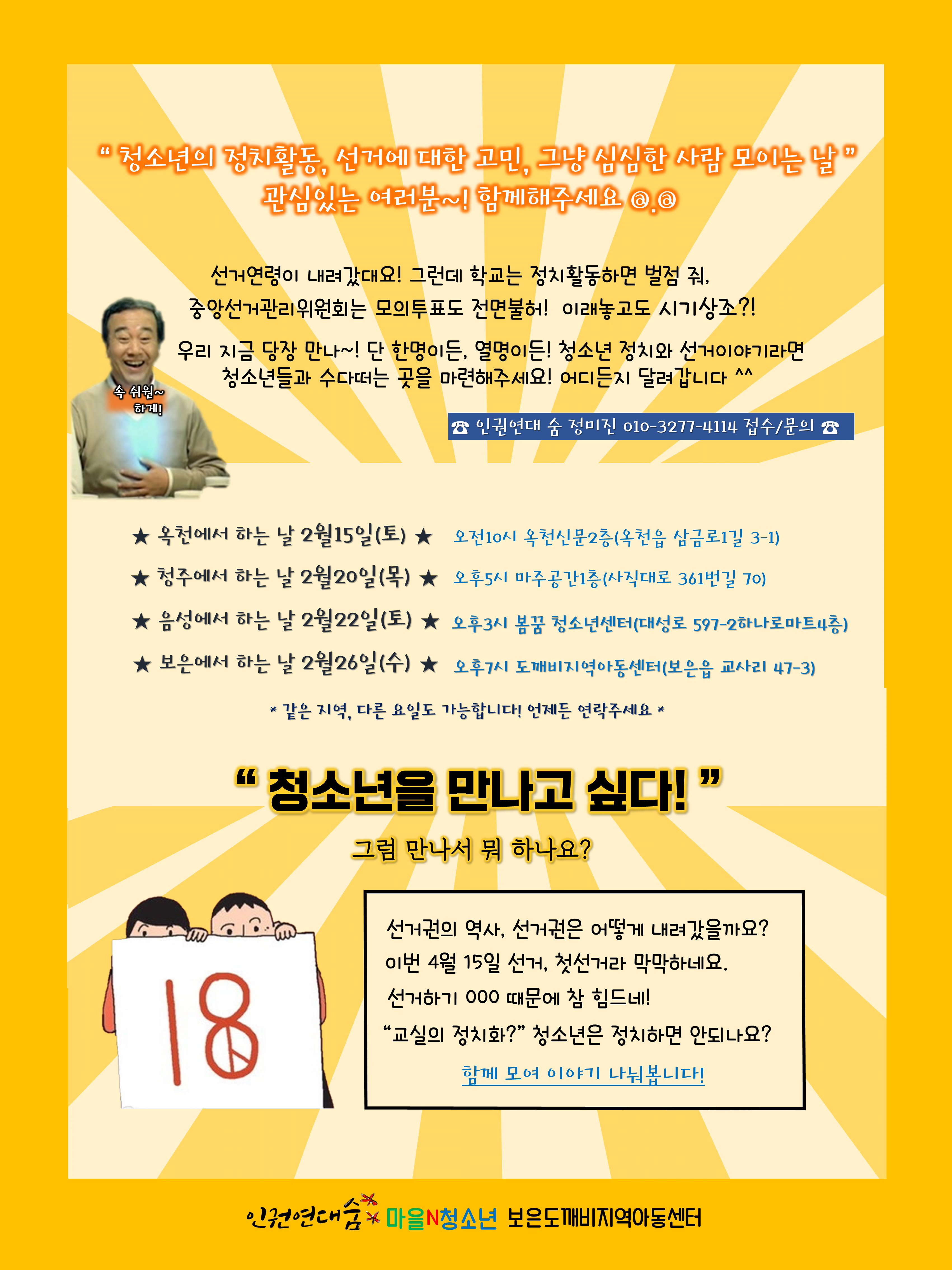 청소년의 정치활동, 선거에 대한 고민, 그냥 심심한 사람 모이는 날!! 관심있는 여러분~! 함께해주세요