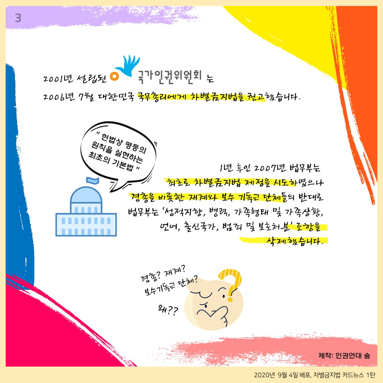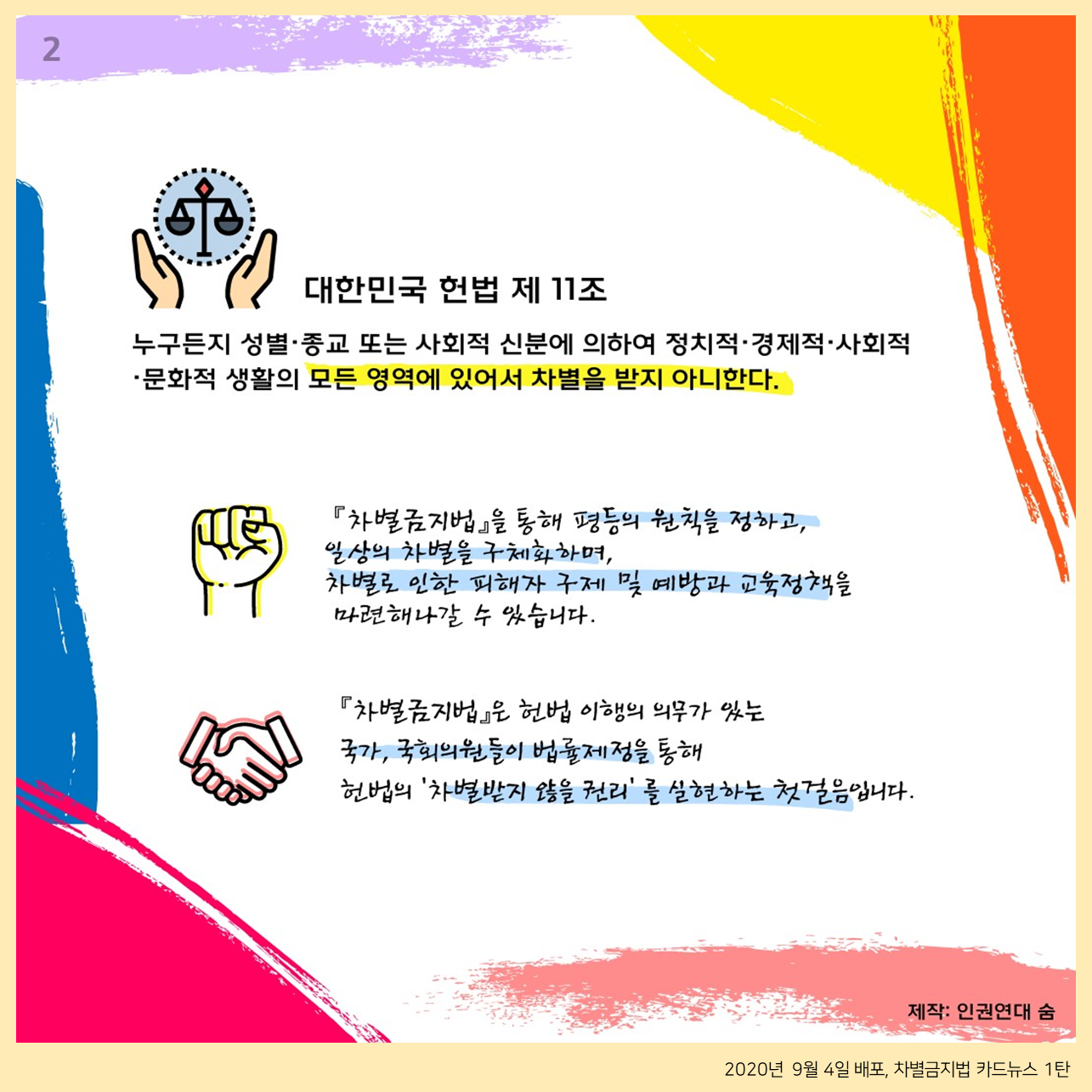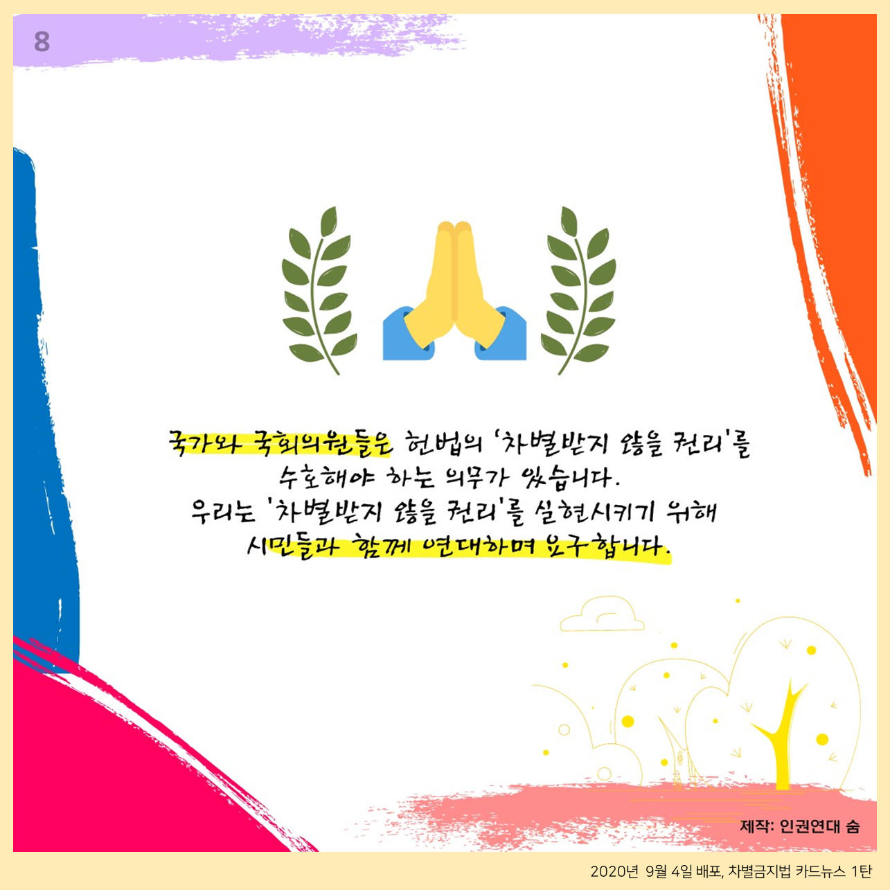 <차별금지법제정 국민청원 10만 가즈아~! : 인권연대 숨 차별금지법 카드뉴스 다시보기>