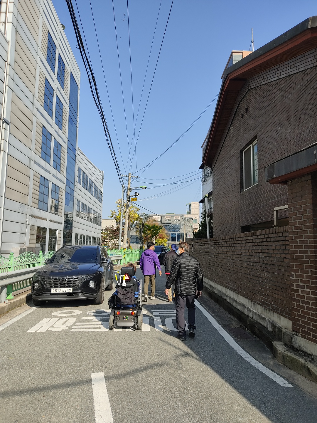골목길은 막연히 휠체어가 접근하기 어려운 조건일 것으로 생각했지만, 오히려 도심 속 좁고 망가진 보행로보다 훨씬 더 수월하게 다닐 수 있었습니다. 그리고 오랜 시간 주민들이 거주하던 곳이라 길이 중간에 끊기지도 않았고 큰 대로변과도 연결되어 있었습니다.