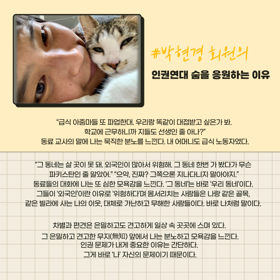 '인권연대 숨을 응원하는 이유' 여섯번째 #박현경 회원입니다.