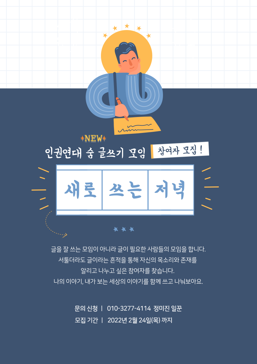 인권연대 숨 new! 글쓰기 모임 <새로쓰는 저녁>의 참여자를 모집합니다.