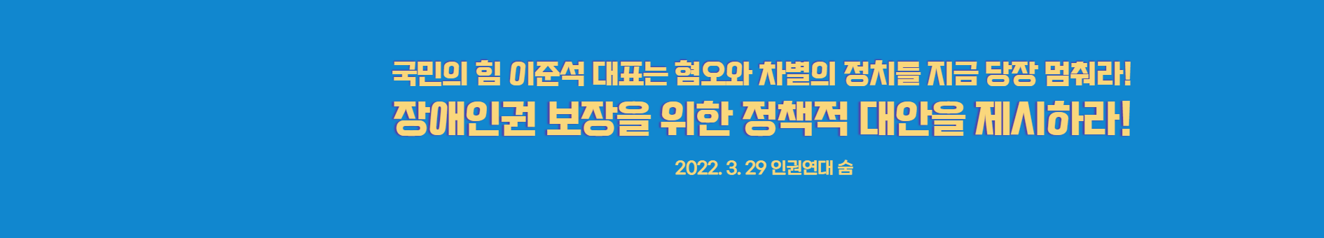 이준석 대표는 혐오와 차별을 선동하는 정치를 지금 당장 멈춰라! 지금이라도 장애 인권운동 현장에 찾아가 자신의 발언을 사과하고 조건 없는 정치적 대안을 제시해야 한다.