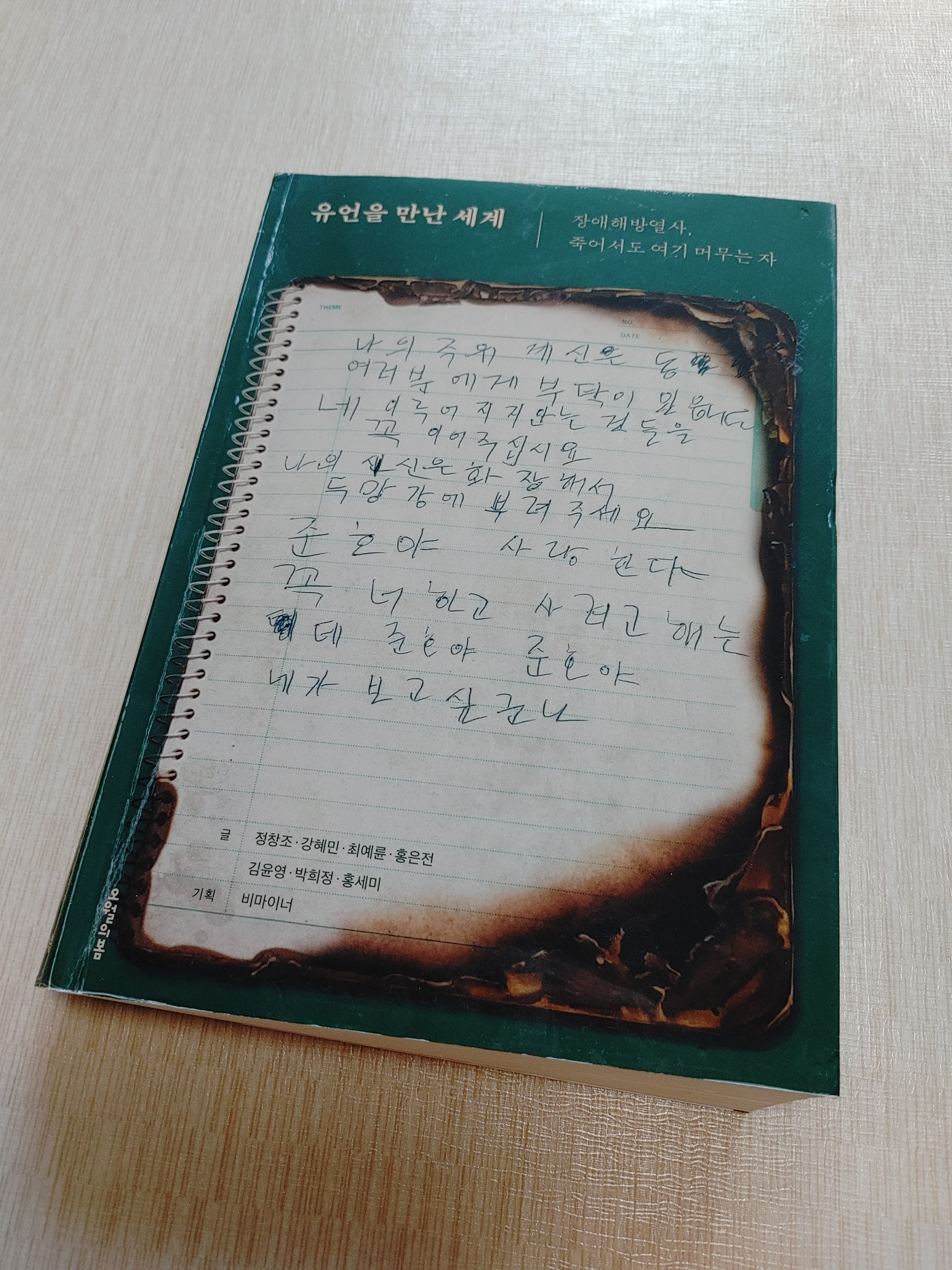 역사를 좋아한다. 우리의 삶과 죽음은 연결되어 있다는 말도...하지만 인권을 알게 된지 5년 이상이 되었음에도 장애인권운동이 이룬 결과만 바라보았을 뿐이다. 이 운동의 현장에 녹아있는 뜨거운 삶과 죽음을 보지 못했다는 사실이 부끄럽다. 민주화와 인권의 증진을 이루어온 지난 역사 속에서 장애인권운동가들의 삶과 죽음이 사람들에게 기억될 만큼 알려지지 못했던 것 또한 사실이다. 유언을 만난 세계는 장애인의 생존과 기본적 권리를 위해 뜨겁게 싸우다 먼저 가신 열사 8분의 삶과 죽음을 복원해 냈다. 책을 읽으며 우리 역사가 사람의 삶과 권리를 짓밟으며 이룬 비문명의 역사였음에 뜨거운 무언가가 치밀어오른다. 누군가의 존재와 투쟁, 그리고 죽음으로 지금 내가 이 자리에 살고 있다는 사실이 가슴 무겁게 다가온다.