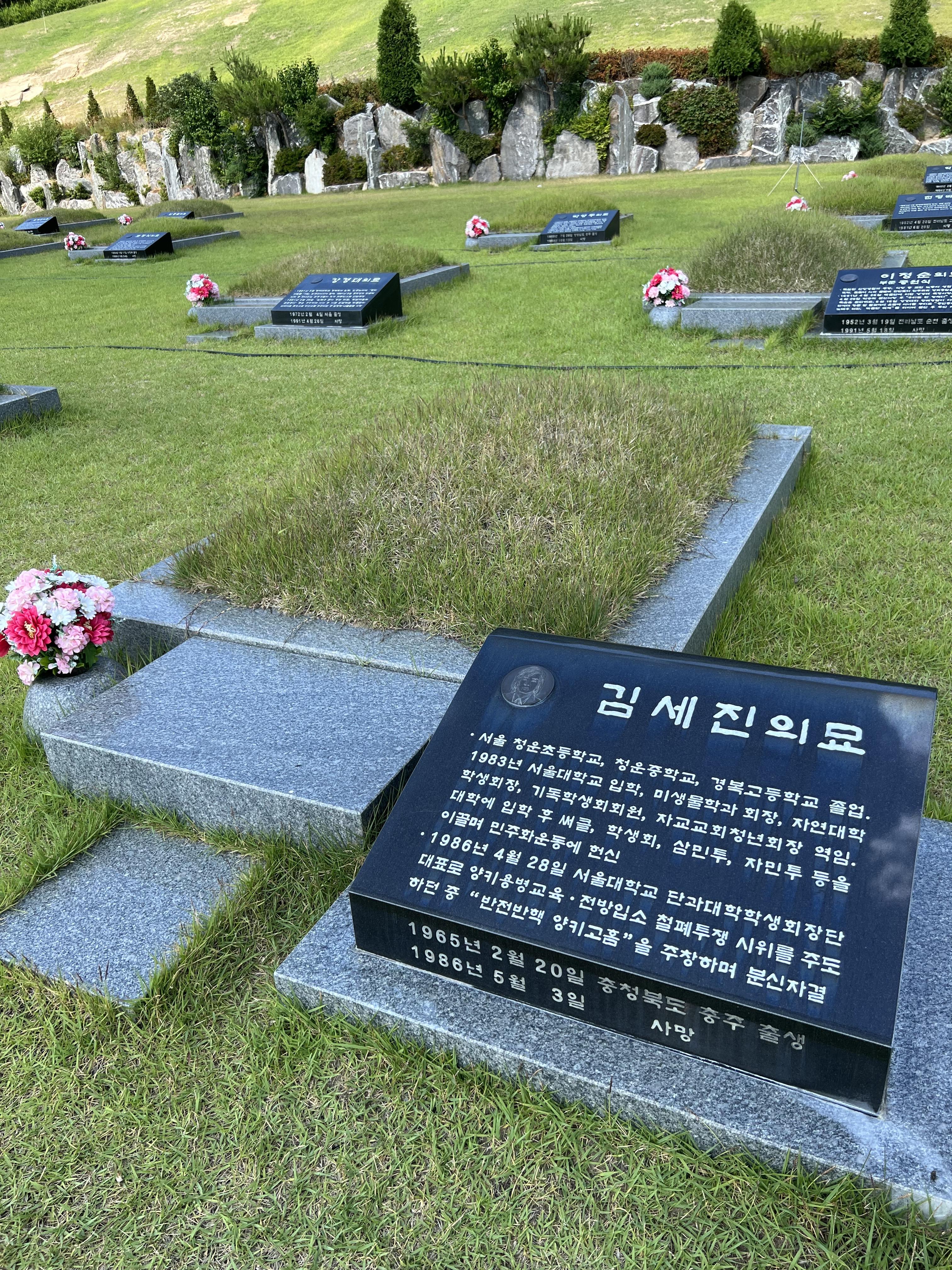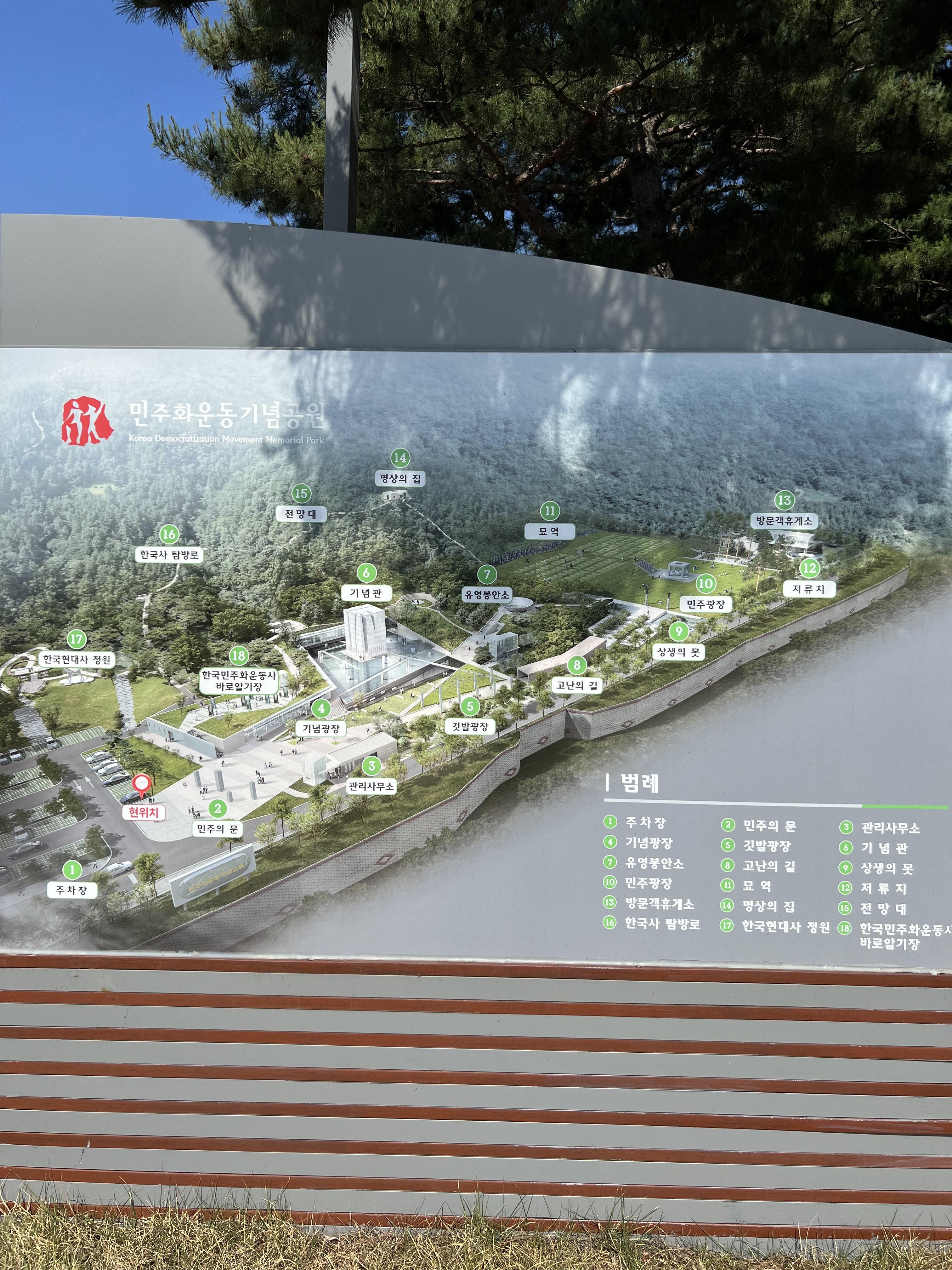 다음으로 이동한 장소는 경기도 이천에 위치한 이천민주화운동기념공원입니다. 이곳은 2001년 1월 <민주화운동 관련자 명예회복 및 보상등에 관한 법률>에 따라 조성이 결정되었고 2016년에 개원했습니다. 민주열사묘역 이외에도 민주화운동기념관이 함께 위치해있습니다.