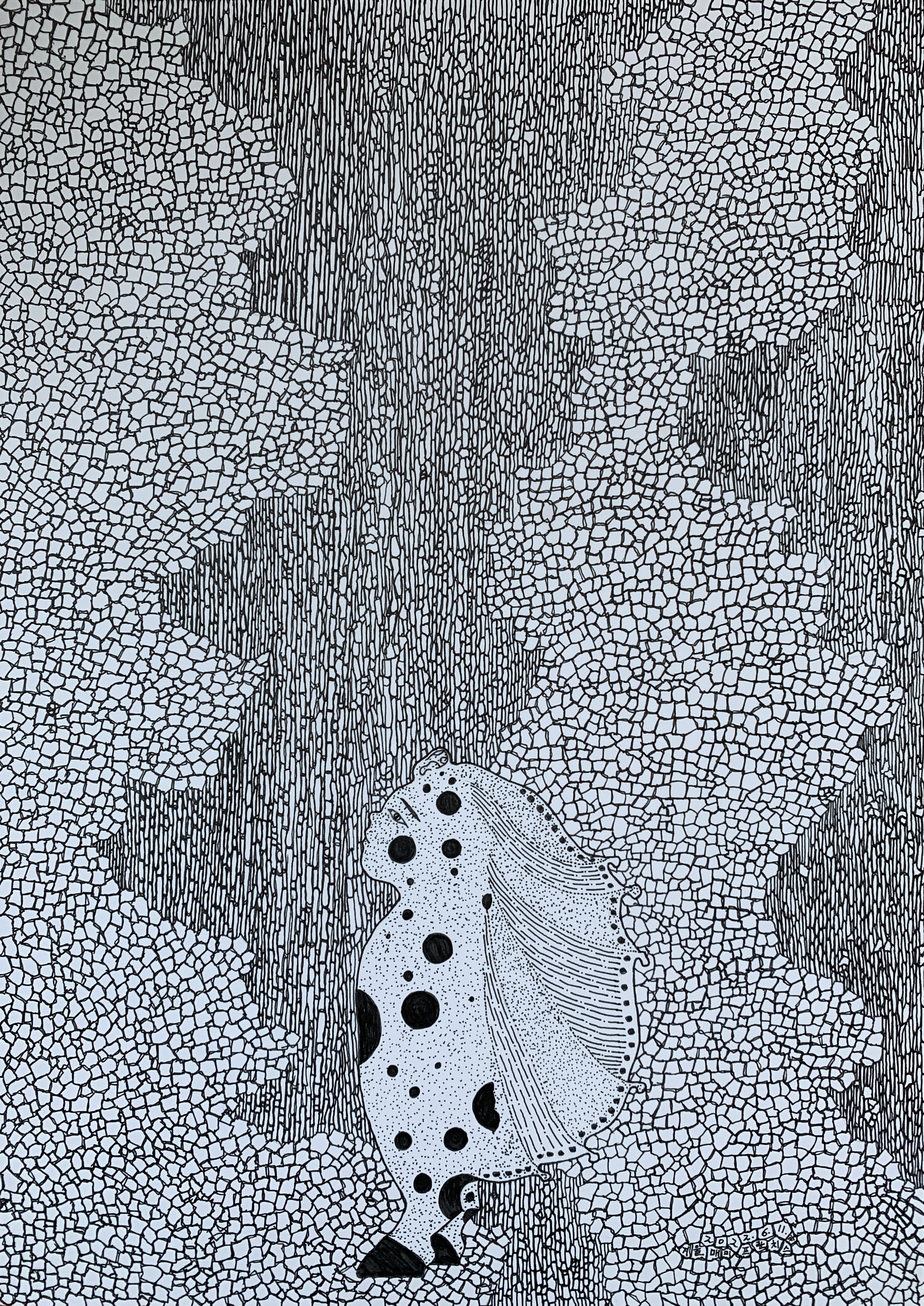 나는 이들을 그리기 전에 머릿속에서 미리 구상하거나 계산하지 않는다. 이들은 내 혈관 속이나 심장 속 어딘가에 살고 있었기라도 하듯 내 손끝을 뚫고 연필을 통과해 종이 위로 울컥울컥 쏟아져 나온다. 그렇게 이들이 일단 몸을 드러내면 나의 임무는 이들의 기괴함과 아름다움을 동시에 정직하게 표현하는 일이다. 이 임무는 세부 스케치와 채색 작업을 통해 실행된다. 이런 작업을 하며 마음속으로 가만히 읊조린다.