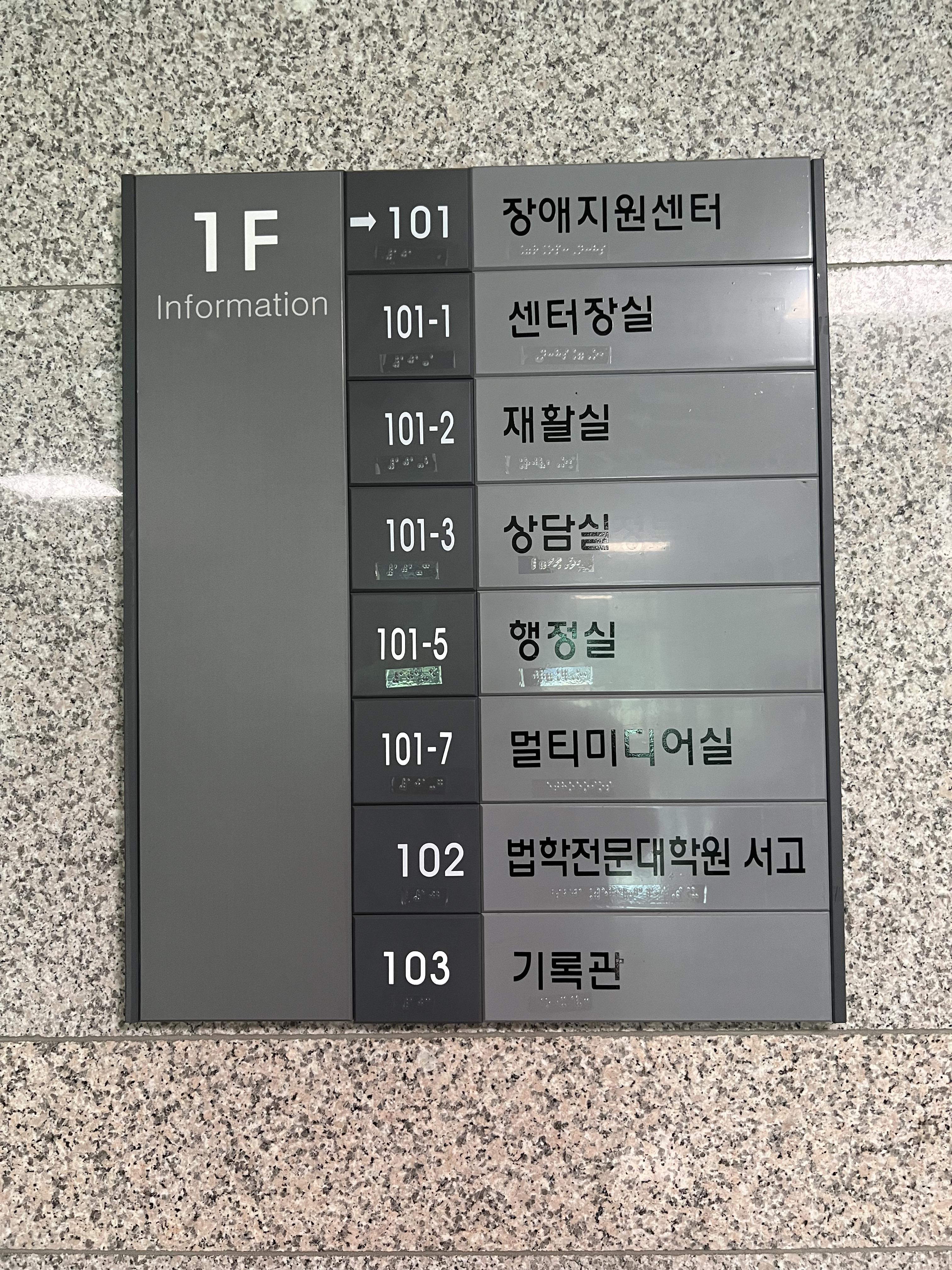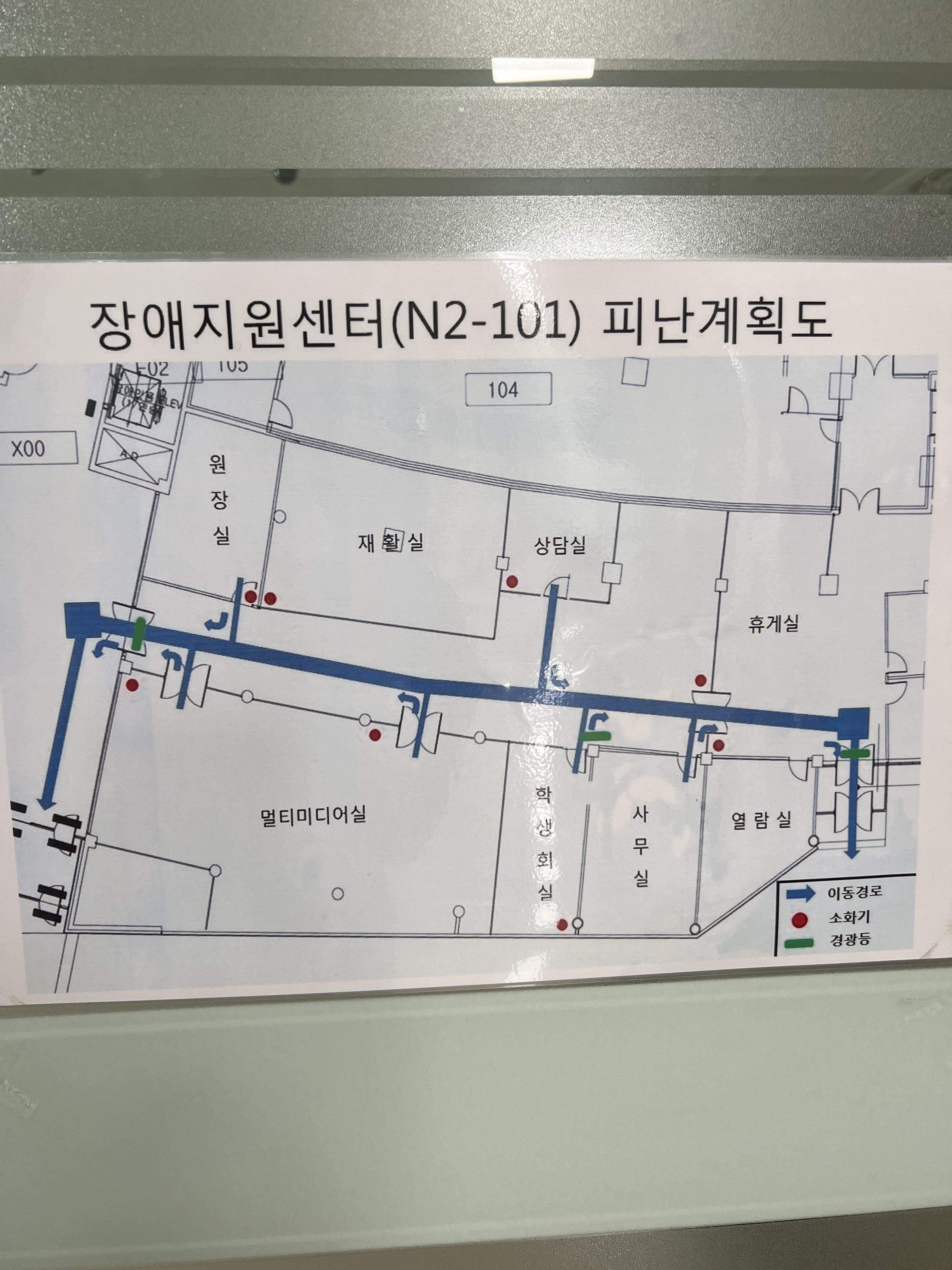 특히 장애지원센터 앞, 뒷문 모두 붙어있는 피난계획도가 눈에 띄었습니다. 담당자분께서는 법적인 의무사항이라 다른 곳에도 다 붙어있다고 말씀하셨지만, 대학 내 공간뿐 아니라 대부분의 공공기관 찾아보기 어렵거나 눈에 잘 띄지 않는 곳에 붙어있는 경우가 많습니다. 각종 공공시설과 거주지에 실효성을 갖추어 보편화 될 필요가 있습니다.