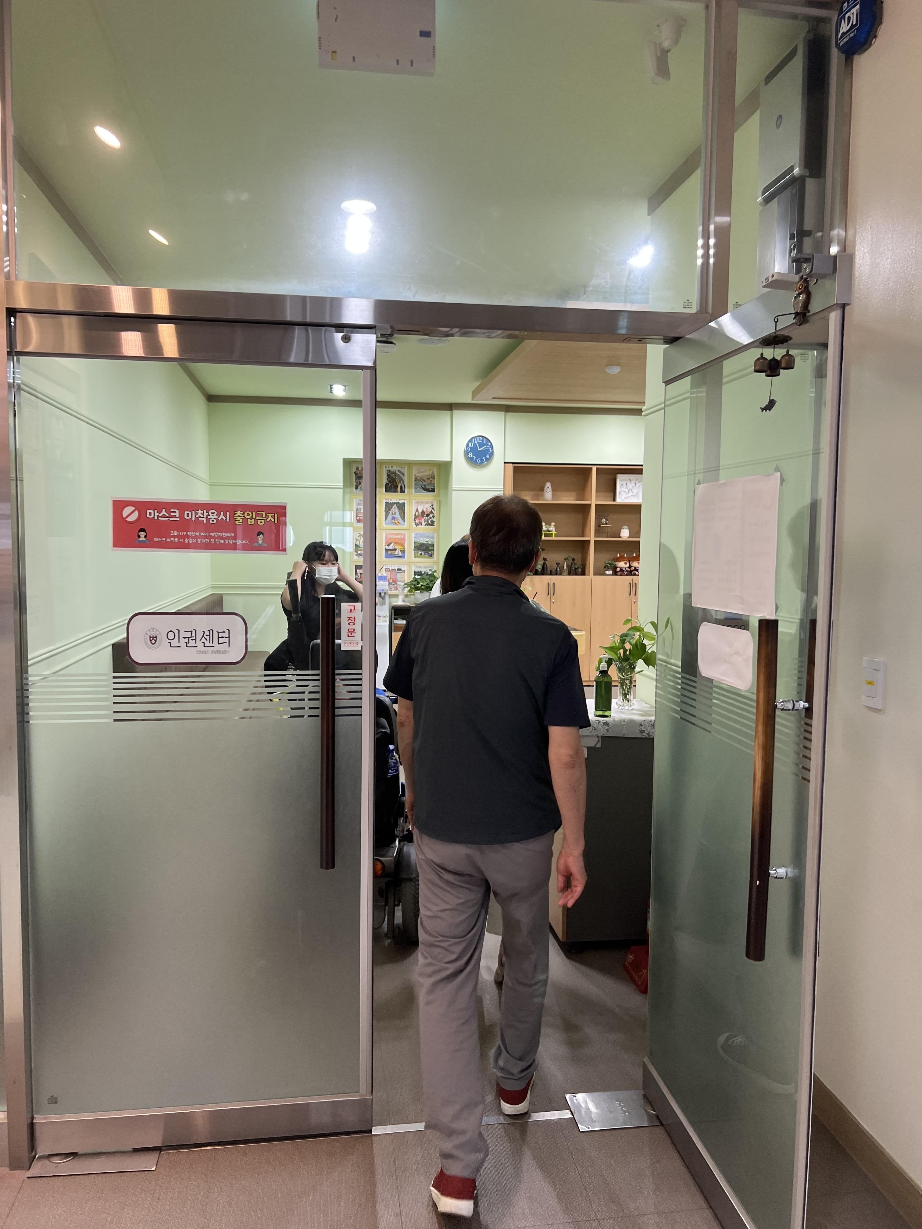 다음은 학생회관을 나와 장애지원센터로 이동했습니다. 장애지원센터는 충북대 정문에 바로 있는 법학전문대학 건물 1층에 있습니다. 장애지원센터 내부에는 다양한 시설이 갖춰져 있습니다. 행정 관련된 사무공간 이외에도 재활실, 장애화장실과 샤워실, 각종 보조기구와 휴게공간 등이 매우 인상적으로 다가왔습니다.