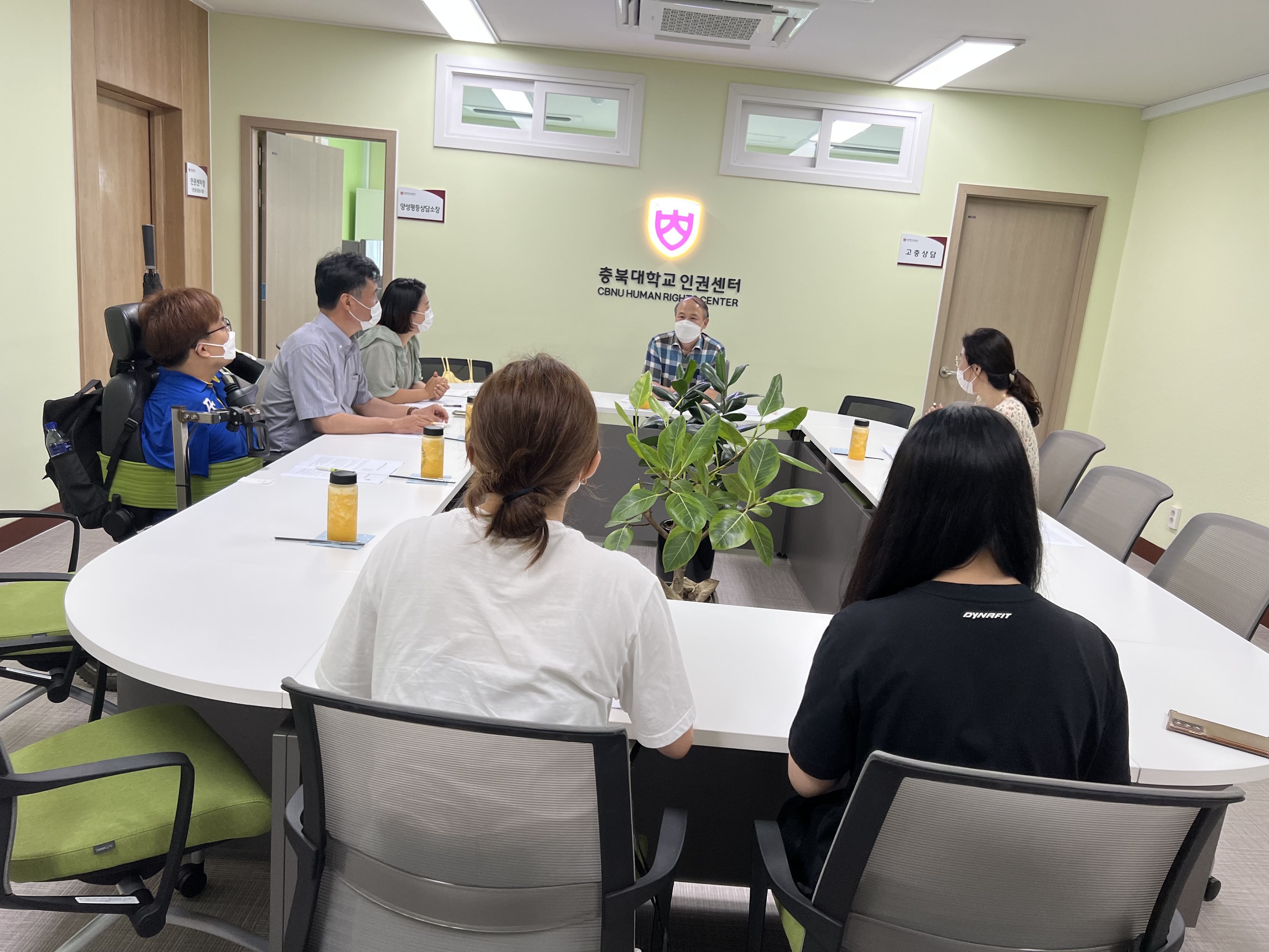 충북대 인권센터는 개소 이후 꾸준한 제도적 정비를 위해 애쓰고 있었습니다. 충북대 인권센터의 설립목적 실현을 위해 교내 학생, 교직원, 지역사회와 접점이 더 넓어지길 바라며 간담회를 마쳤습니다.