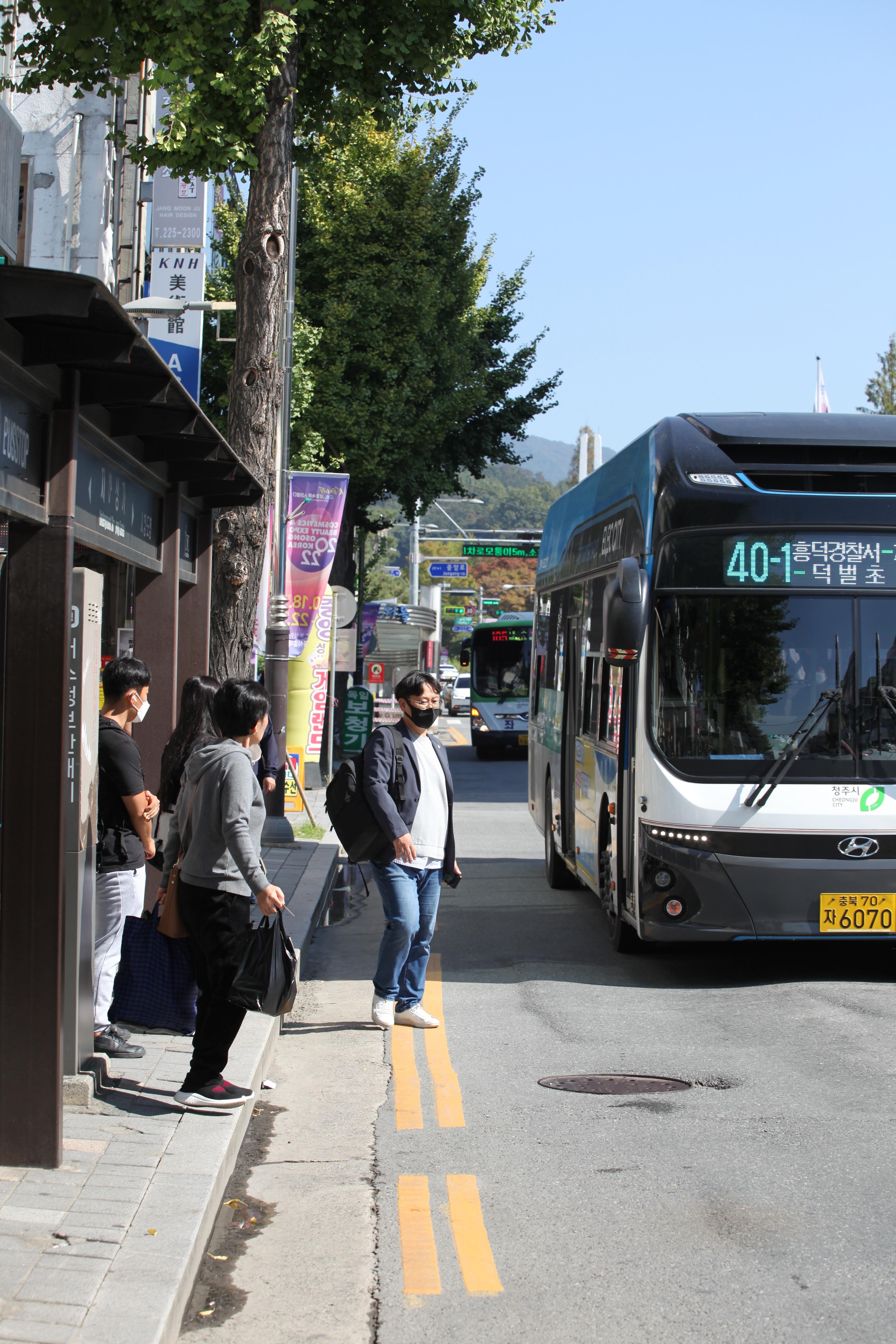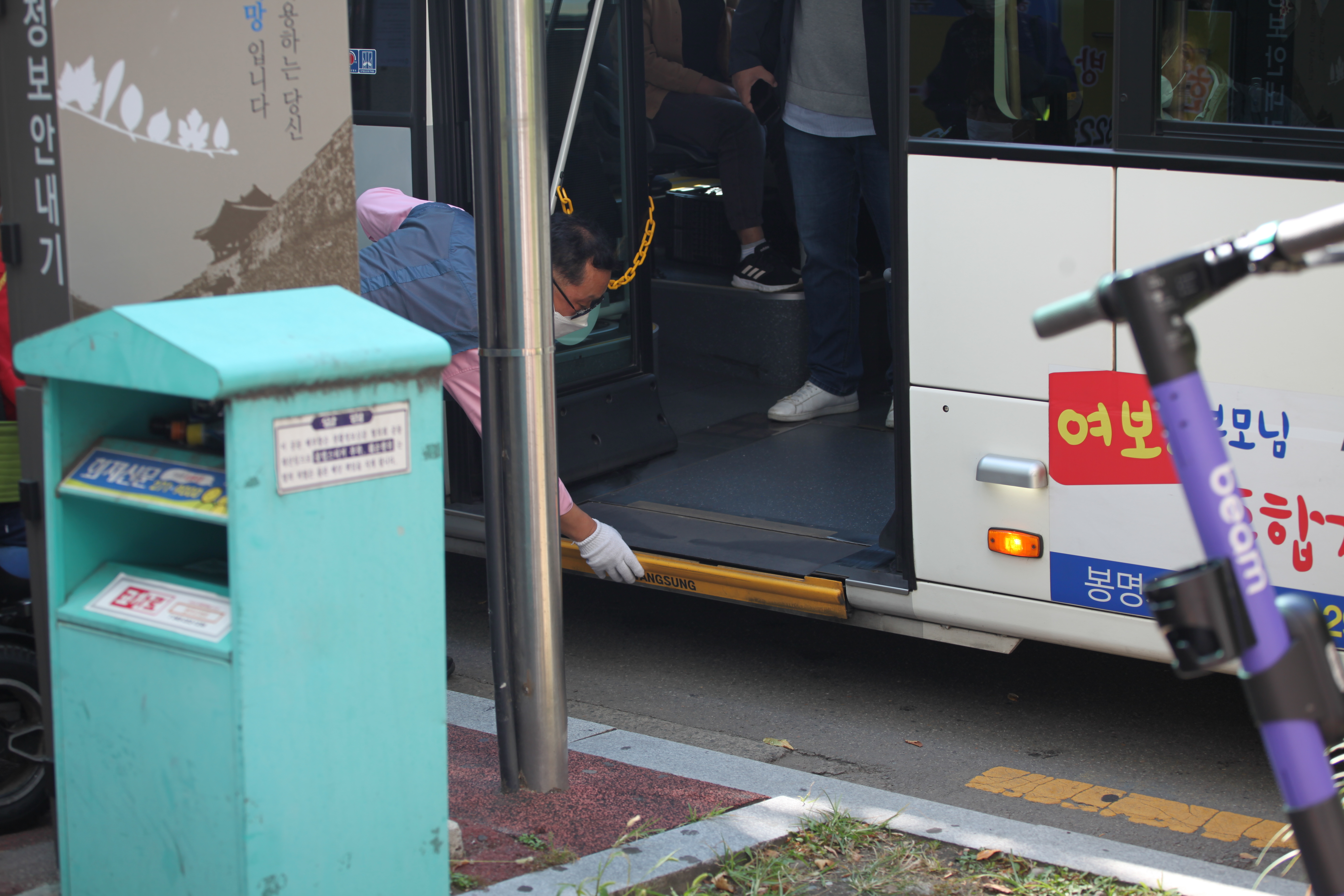 우리가 이용하려 했던 831번 버스는 일부만 저상이었고 운행 시간도 많지 않아 영운동행정복지센터 정류장까지 걸어 이동하였습니다. 500번 저상 버스를 타고 환승을 위해 도청으로 갔습니다. 저상버스를 타는 과정에 리프트가 오래되었는지 나오지 않아 버스기사님이 리프트를 강제로 끄집어내어서야 버스를 탑승할 수 있었습니다.