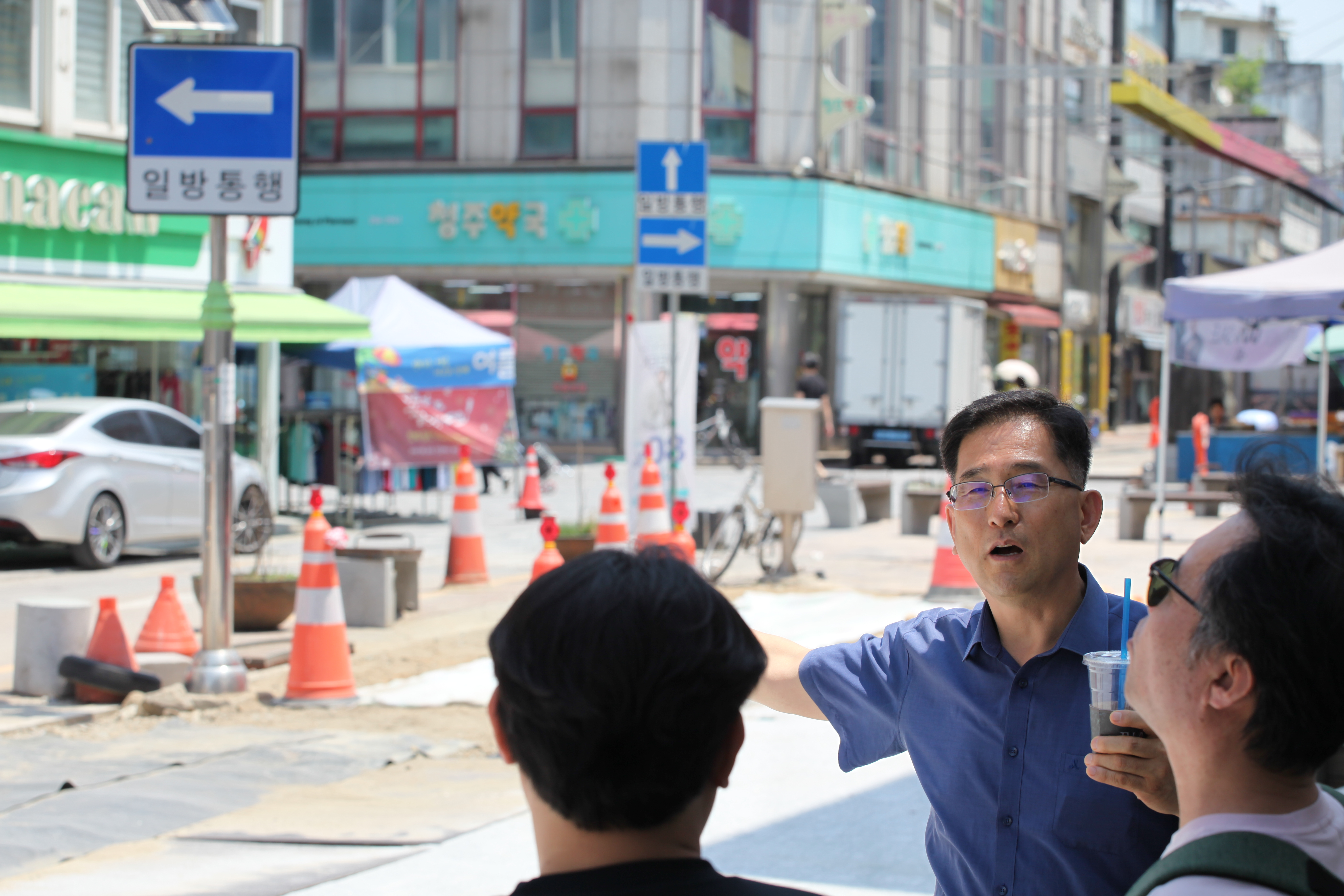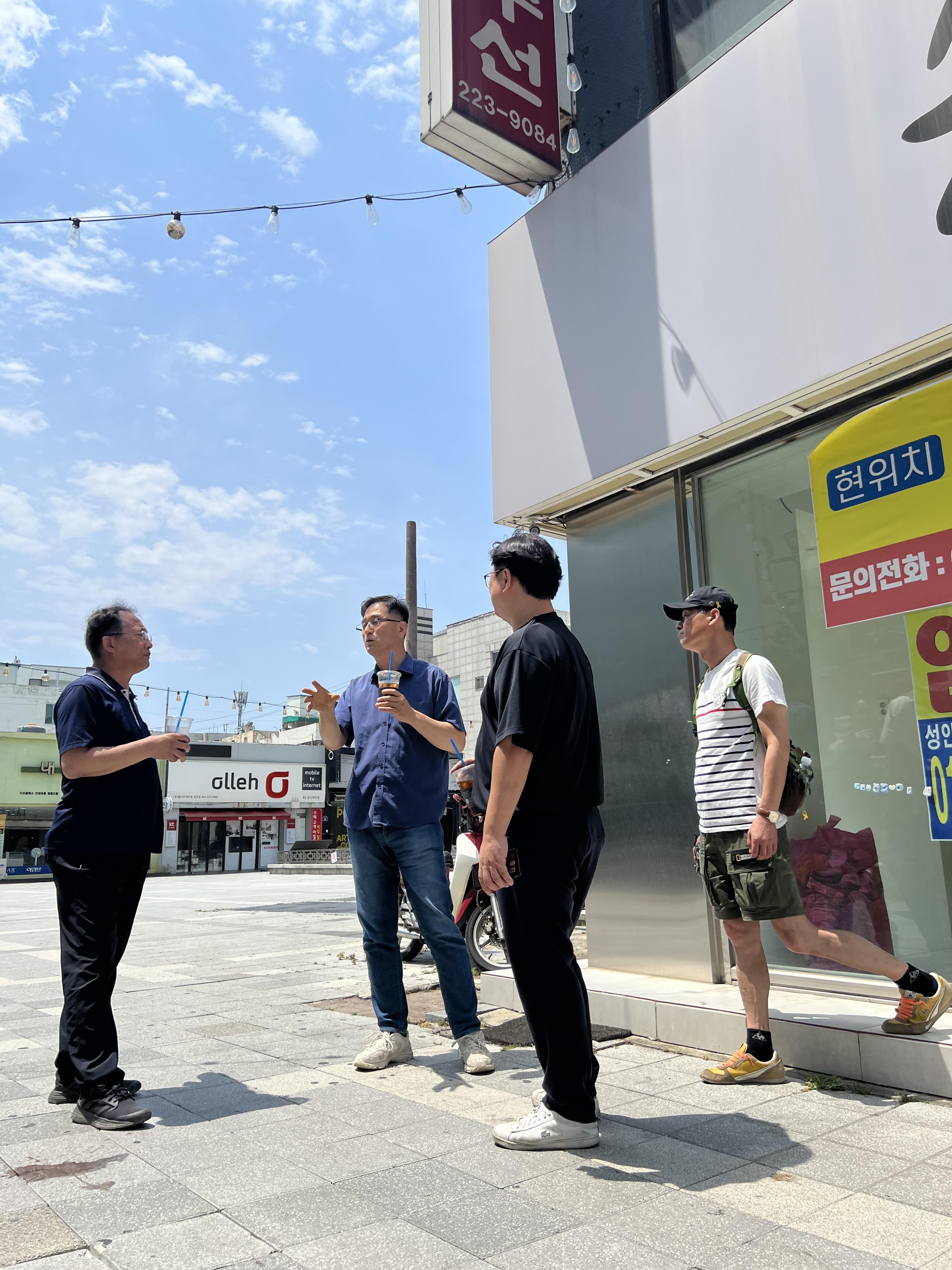 용두사지 철당간앞에서 1987년 당시 북문로 일대(현재 성안길) 상인들의 지지와 성원을 얻어내기까지의 일화를 소개