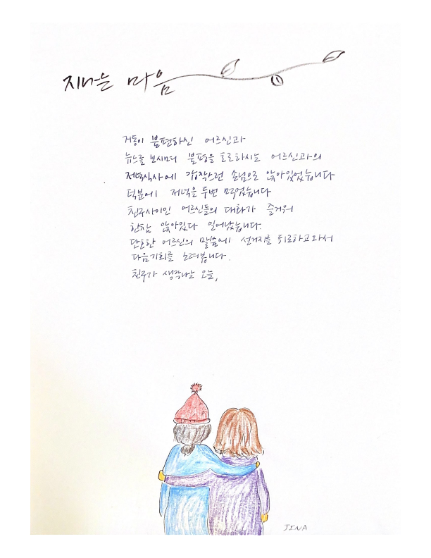 소식지/지나는 마음 친구 by 인권연대 숨 2023. 11. 27. 공유하기 게시글 관리 인권연대 숨 저작자표시 비영리 변경금지 (새창열림) '소식지 > 지나는 마음' 카테고리의 다른 글 지나는 마음 (0) 2024.01.26 지금, 시작 (0) 2023.12.26 몸-마음 (0) 2023.10.25 갈아엎고 싶은... (0) 2023.09.25 이러남 & 잠 (0) 2023.08.25 관련글 지나는 마음 지금, 시작 몸-마음 갈아엎고 싶은... 댓글