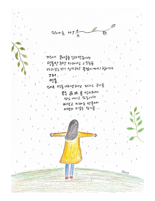 소식지/지나는 마음 맹물로 크는 사랑 by 인권연대 숨 2024. 2. 26. 공유하기 게시글 관리 인권연대 숨 저작자표시 비영리 변경금지 (새창열림) '소식지 > 지나는 마음' 카테고리의 다른 글 앎과 행함 (0) 2024.04.25 지나는 마음 (0) 2024.03.26 지나는 마음 (0) 2024.01.26 지금, 시작 (0) 2023.12.26 친구 (0) 2023.11.27 관련글 앎과 행함 지나는 마음 지나는 마음 지금, 시작 댓글